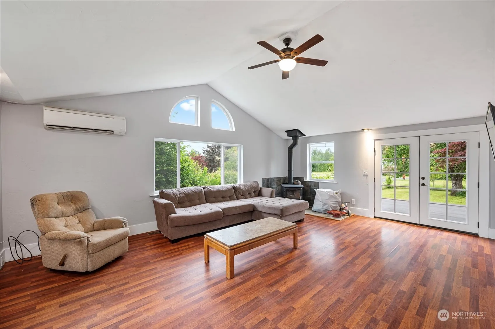 Shy 2-acre property with breathtaking mountain views! A classic, well-built home boasting a newer metal roof, hardi-plank siding, huge trex deck, and a large fenced in area for dogs. Inside find a huge living room with vaulted ceilings with french doors. You also have a 3 head mini-split system for inexpensive heat and the bonus of A/C & a wood stove! Kitchen has lots of room to cook and also offers a vaulted ceiling. Bathroom has full tile shower and heated floors. Utility/sun room beams with light! So roomy & sunny you will actually want to do laundry! Upstairs being used as 3rd bedroom. Outside you have plenty of space for a garden and don’t forget the apple & cherry trees! A nice dry outbuilding for storage or a shop & it has 220 power.