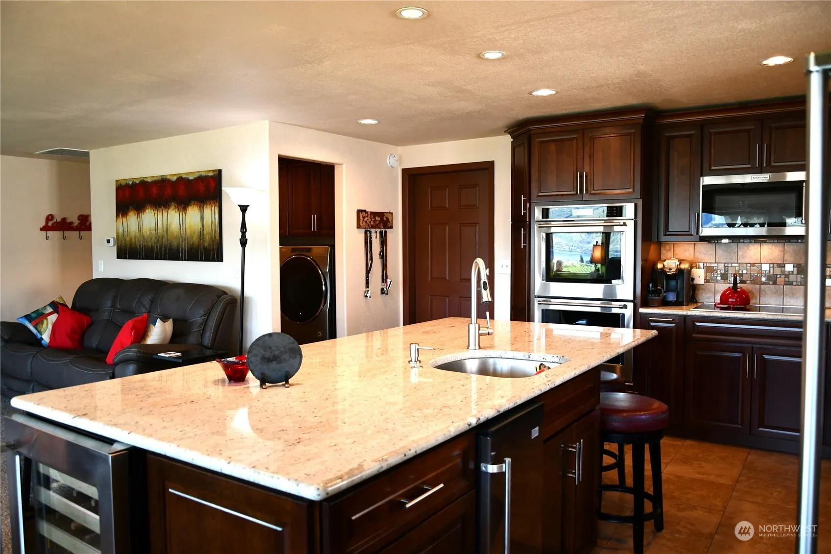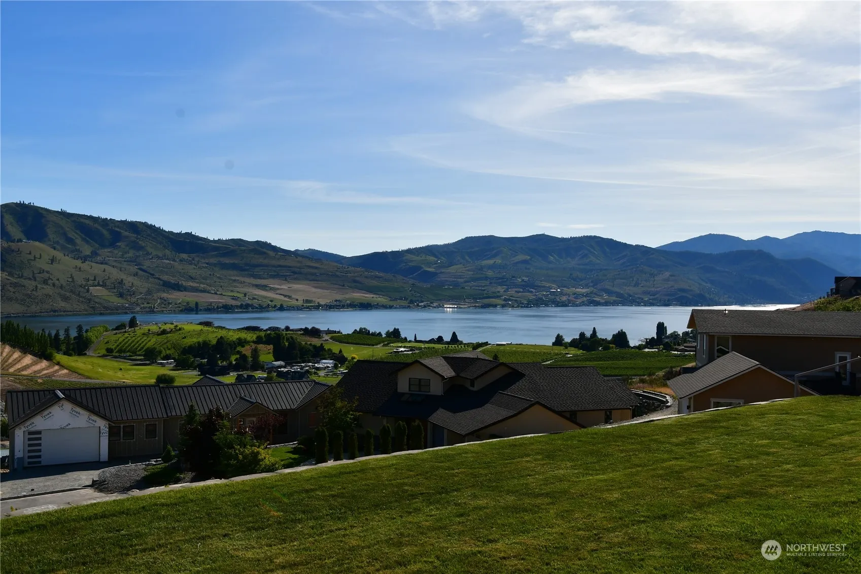 3 bedroom, 2 bath rambler in the desirable Golf Course Terrace neighborhood overlooking Lake Chelan. Remodeled in 2015 included new paint, flooring, windows & new kitchen with cabinets with soft closing feature, appliances, large island that includes additional sink, wine cooler, and brand-new ice machine, granite counter tops, and double ovens. Open floor plan with kitchen, dining and living room all with a view. Master suite with double closets and sunroom with its very own split system to keep you cool in the summer while enjoying your view! Double doors from Sunroom to patio and yard. Large aggregate driveway installed in 2018 provides lots of room for guests along with the 2-car garage. Great location close to the city golf course.