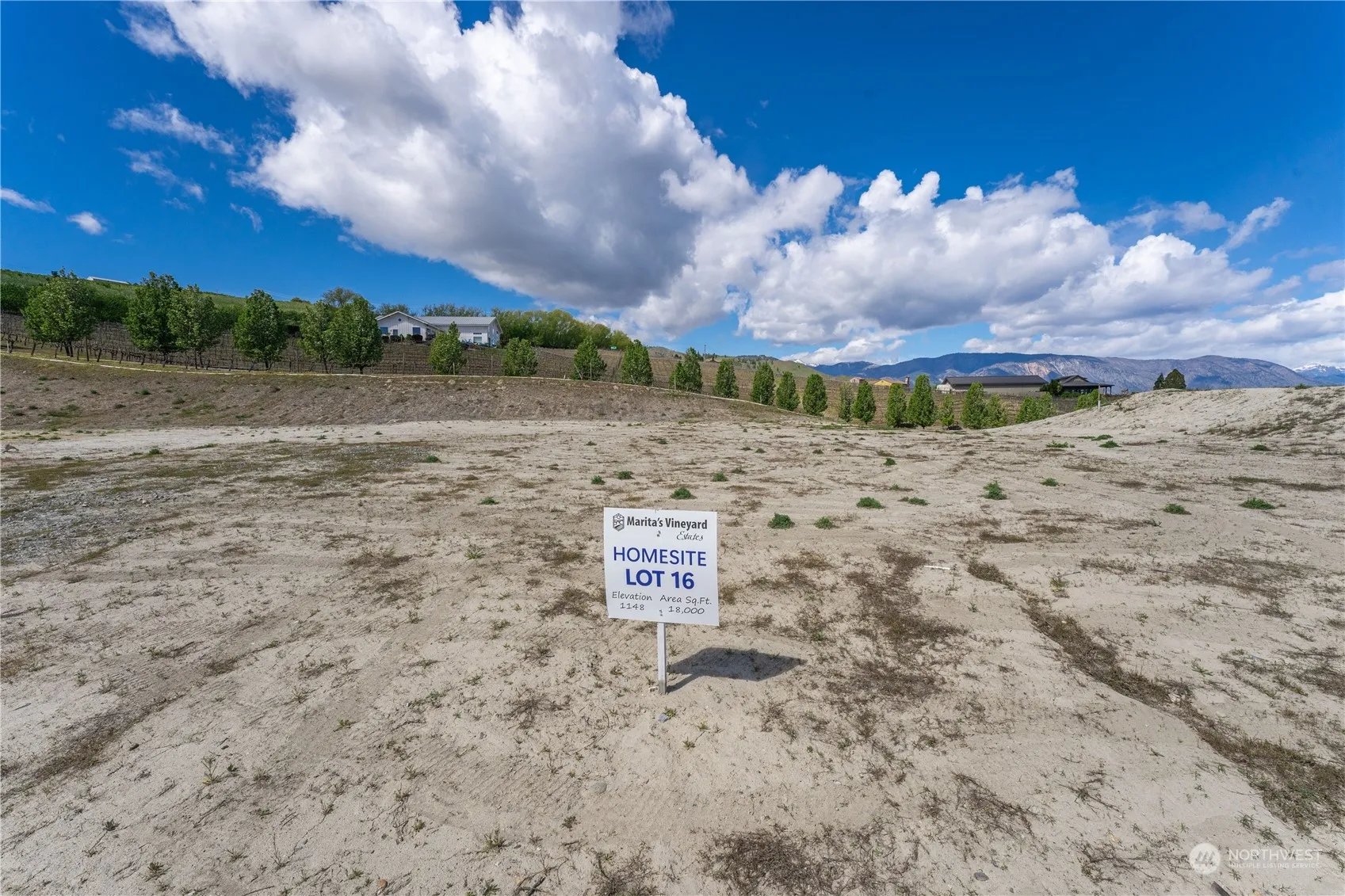 Welcome to Marita’s Vineyard Estates a Luxury Gated Community! Lot 16, 1/3 acre-home site with gorgeous Lake Chelan, Mountain & Territorial views! These properties are truly builder ready all grading & site prep has been completed. The gated community is accessed by a private street, sidewalk, & all utilities including H20, power, sewer, irrigation, fiber, & storm drain runoff. CCR’s are in place to ensure a high quality of construction is met providing confidence in protecting future property values. Conveniently located near Hwy 97, adjacent to some of the finest wine establishments in the valley including Fielding Hills, Siren Song, Callan & Karma wineries, walking distance to Sunshine Market & Even Keel.