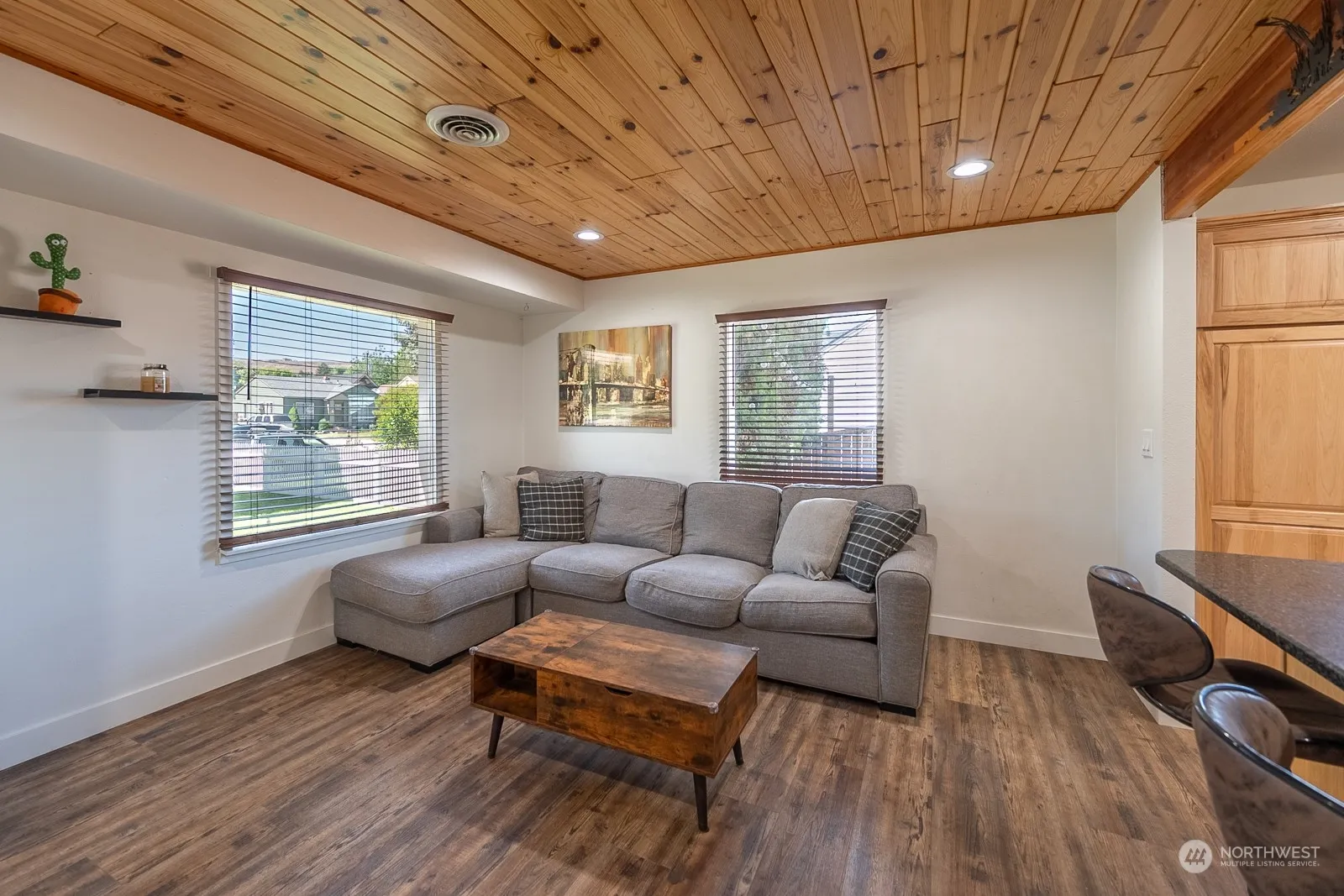 This is a very cute home ready to move right in. The open floor plan features a beautiful kitchen with hickory cabinets, solid surface counter tops and stainless steel appliances. There is Montana knotty pine tongue and groove to give a warm, homey feeling. The finished basement has a great rec room with an over-sized window, a large bedroom with a non-conforming window, 3/4 bathroom and another finished room perfect for your den. The fully fenced yard includes a large patio, hot tub, nice back yard, underground sprinklers, detached double-car garage plus extra off-street parking and shed. This is a must see!
