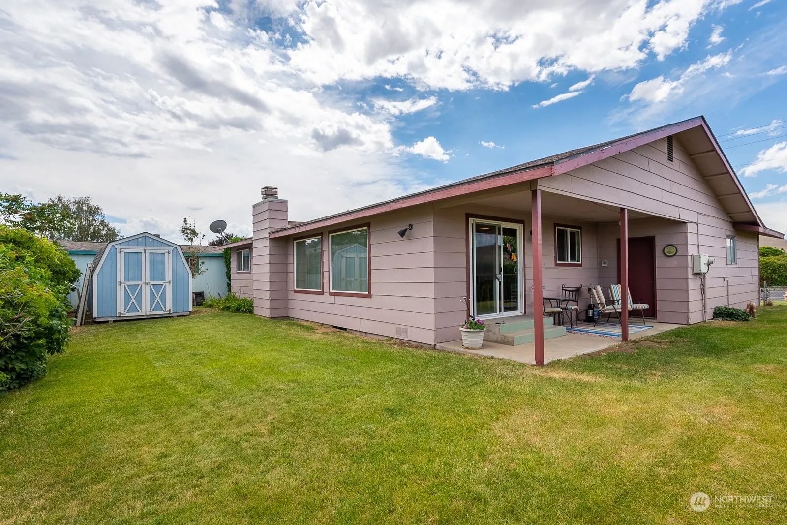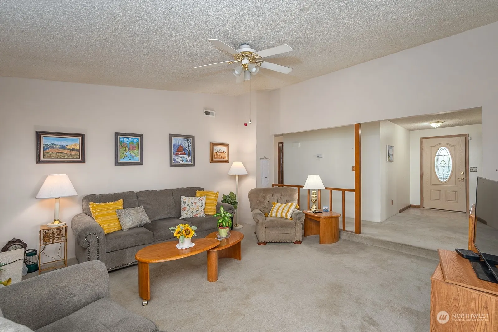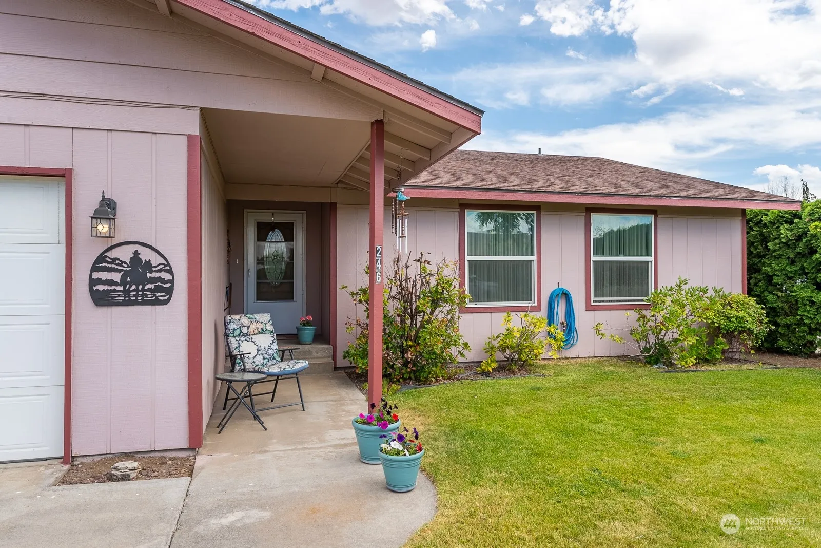This is a solid home with so many great features. An open entry way that leads into the living room with a vaulted ceiling and fireplace. Large kitchen with lot of cabinets, bar seating, adjacent to the dining area with sliding glass door to the patio. All the bedrooms are good sizes and primary suite has full bathroom and 2 closets. Double car garage attached with storage space, outside is low maintenance landscaping and partially fenced.