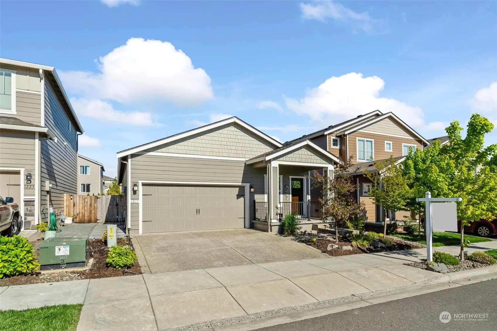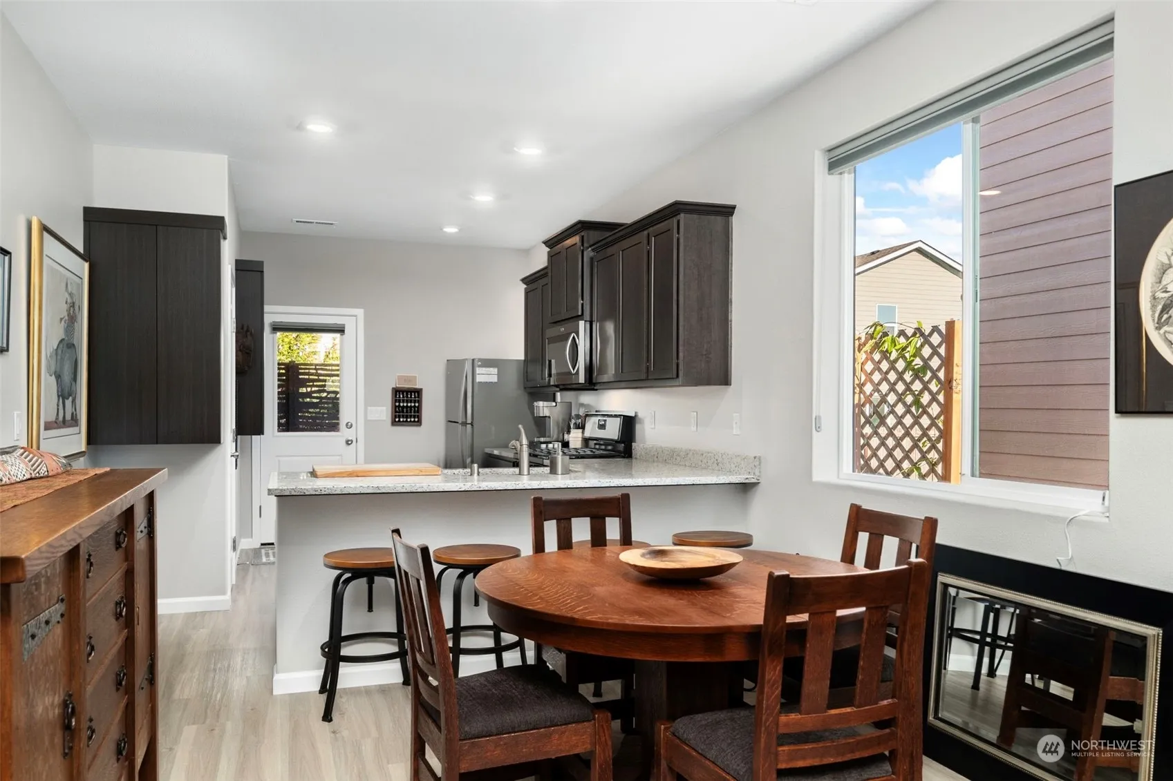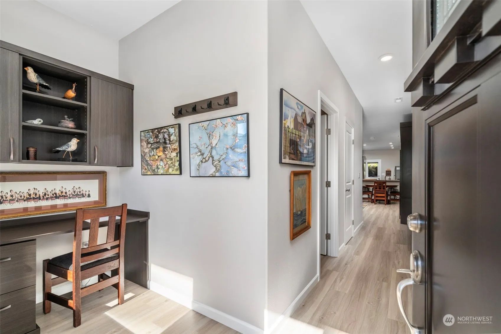 A blend of comfort&style in this beautiful home with thoughtful upgrades&custom features designed for modern living.Adorned w/custom built-ins that provide both functionality&elegance.A well-appointed kitchen w/ample cabinetry,modern appliances&breakfast bar-designed for both everyday cooking&special gatherings.Whether you work from home or need a quiet space for studying,the dedicated office nook offers a peaceful environment to boost productivity.Enjoy the perfect amount of natural light with stylish custom blinds throughout the home.The exterior of the home features a spacious composite deck, perfect for outdoor dining, entertaining, or simply enjoying the serene surroundings.