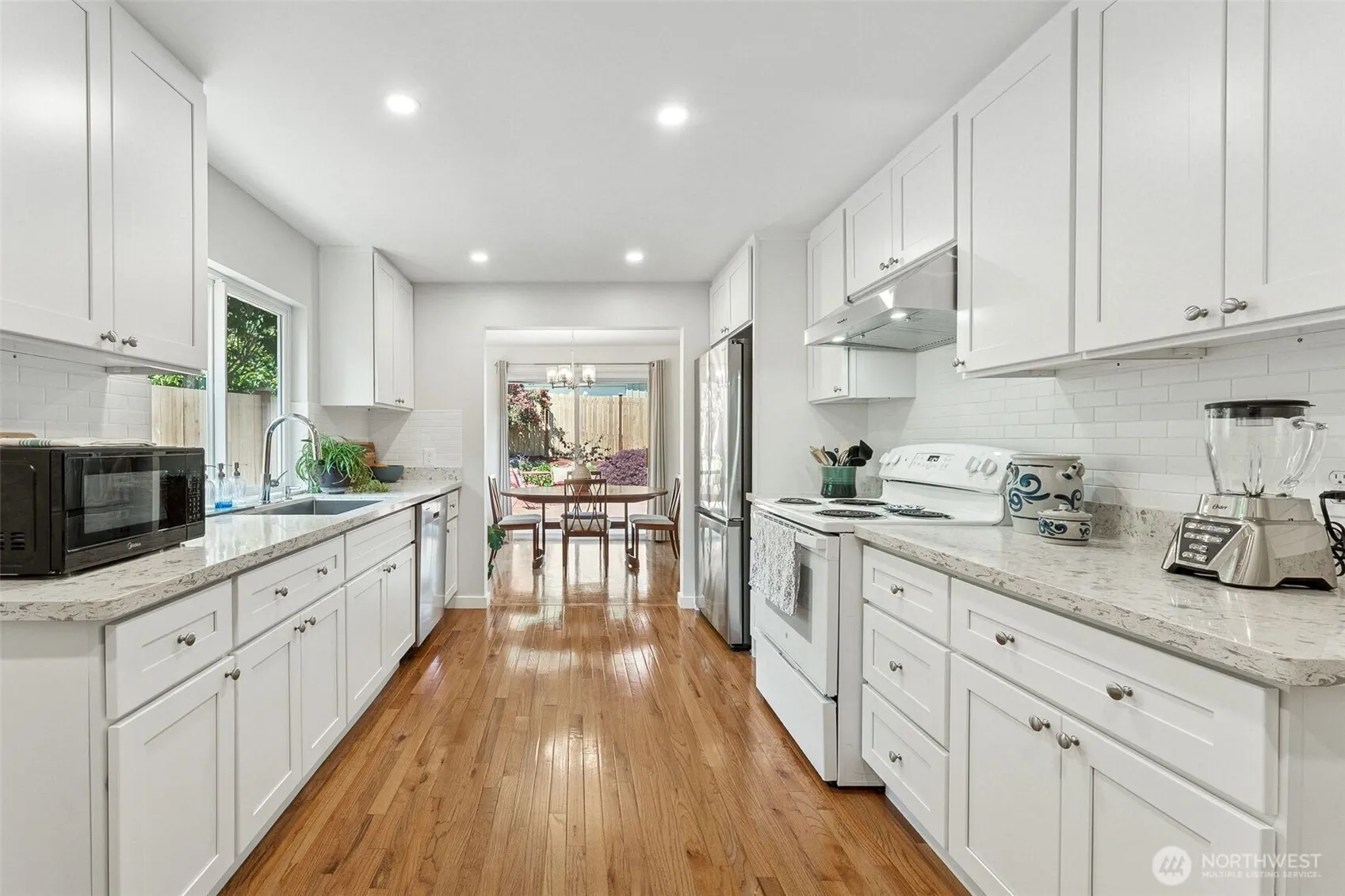You’ll love this beautifully updated Tri-Level w/great privacy & a floor plan made for entertaining! Enter the main floor to gleaming hardwoods in living, dining & kitchen spaces. Circular floor plan on main level w/Kitchen, Dining & Living areas. Slider from dining takes the party outside to the level, fully fenced back yard w/sunny deck. Kitchen updated w/bright white shaker cabinets, granite counters, newer appliances. Upper level: 3 bedrooms & full bath; Lower level: family/bonus rm, + laundry, 1/2 bath & huge storage! Natural light abounds & the gorgeous yard has plum tree, currants, raspberries, champaigne grapes & “columnar apple” trees. New roof 5 yrs; some newer vinyl windows. Close to fwys, shopping, medical, restaurants & SeaTac.