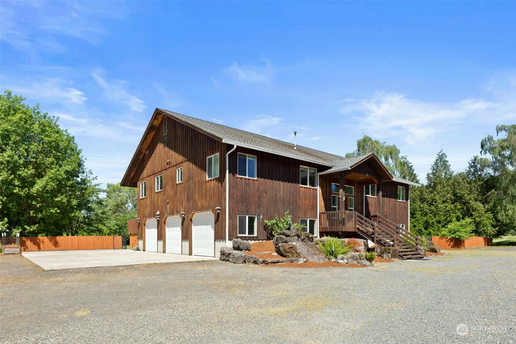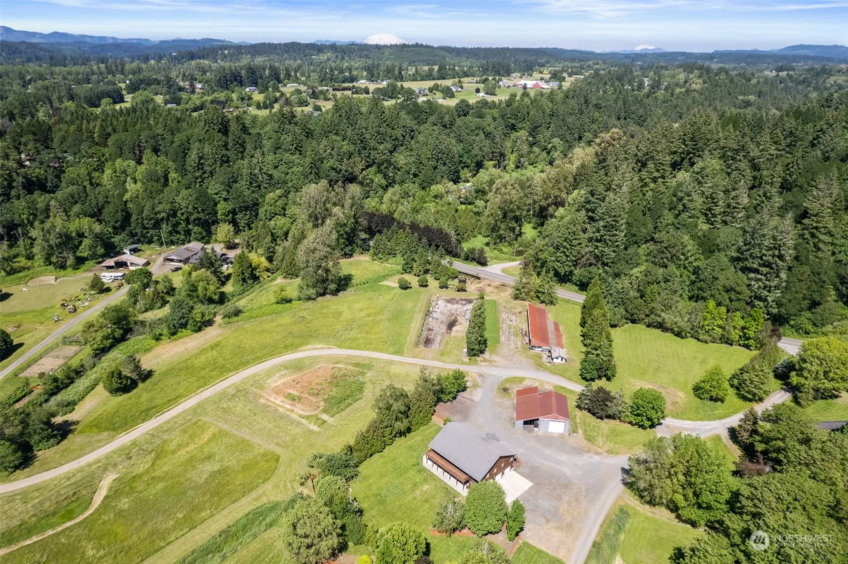 Fly home to your private recreational retreat & nature sanctuary in charming La Center 30 min to PDX! Rare 21.7 acres off Daybreak Airport WA46 used yr round! Finished daylight basement w exterior entrance, potential for ADU & 6 total bedrooms; finished w/ 2 bonus rms, living rm, new flooring, plumbed & wired, full bath- Perfect for multi-generation living or income! 200+ acres of shared recreational land for the neighborhood, E Lewis river frontage, 2 private beaches! Great room, vaulted ceilings, huge deck, 4 bedrms, office, primary suite, laundry main floor, walk-in closets, Jetted tub. 4 car garage + HUGE shop; open space to build hangar or conversion. RV pad w/ water & disposal. Make lasting memories of a lifetime!