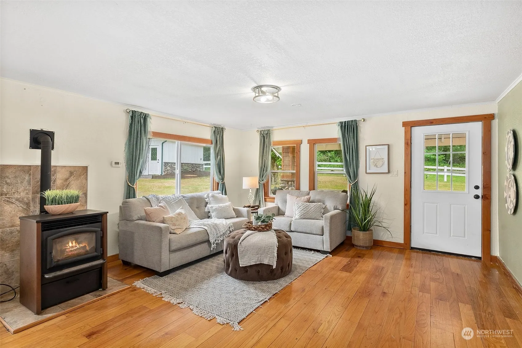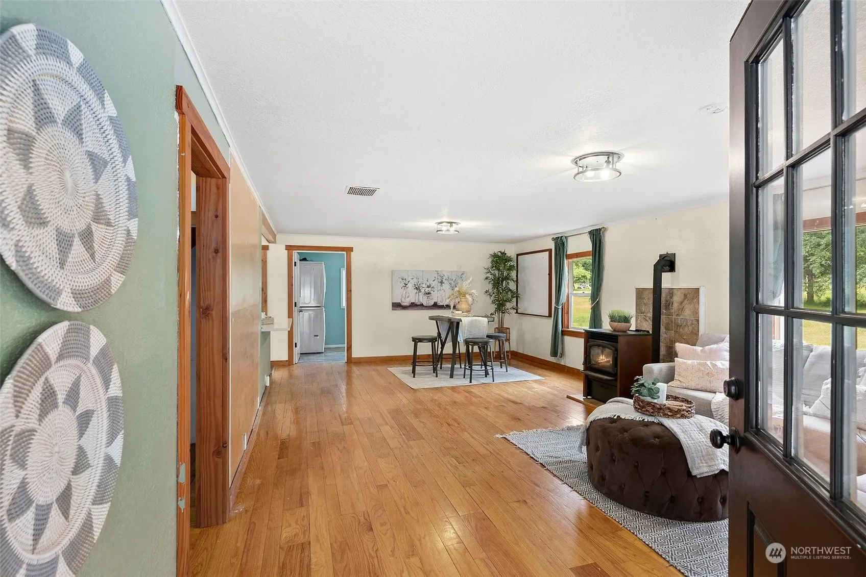 This picturesque farmhouse with detached garage, shop, and barn on a shy 6 acres. The homes blends all of your needs and wants together with classic hardwood floors throughout the lower level bringing the traditional dining and living rooms into the modern kitchen filled with the finishes you have dreamed of. Spend your days walking the manicured trails through the forest above the big beef estuary or re-establish the farm life and bring the barn from man cave to horse haven.