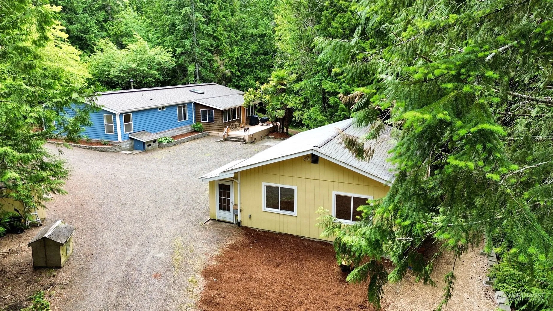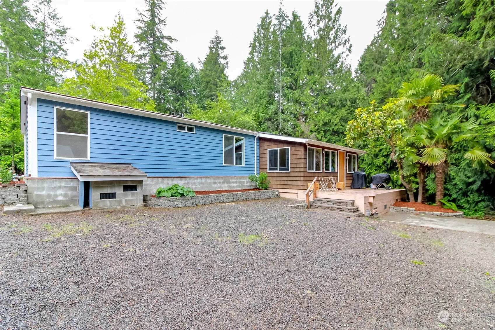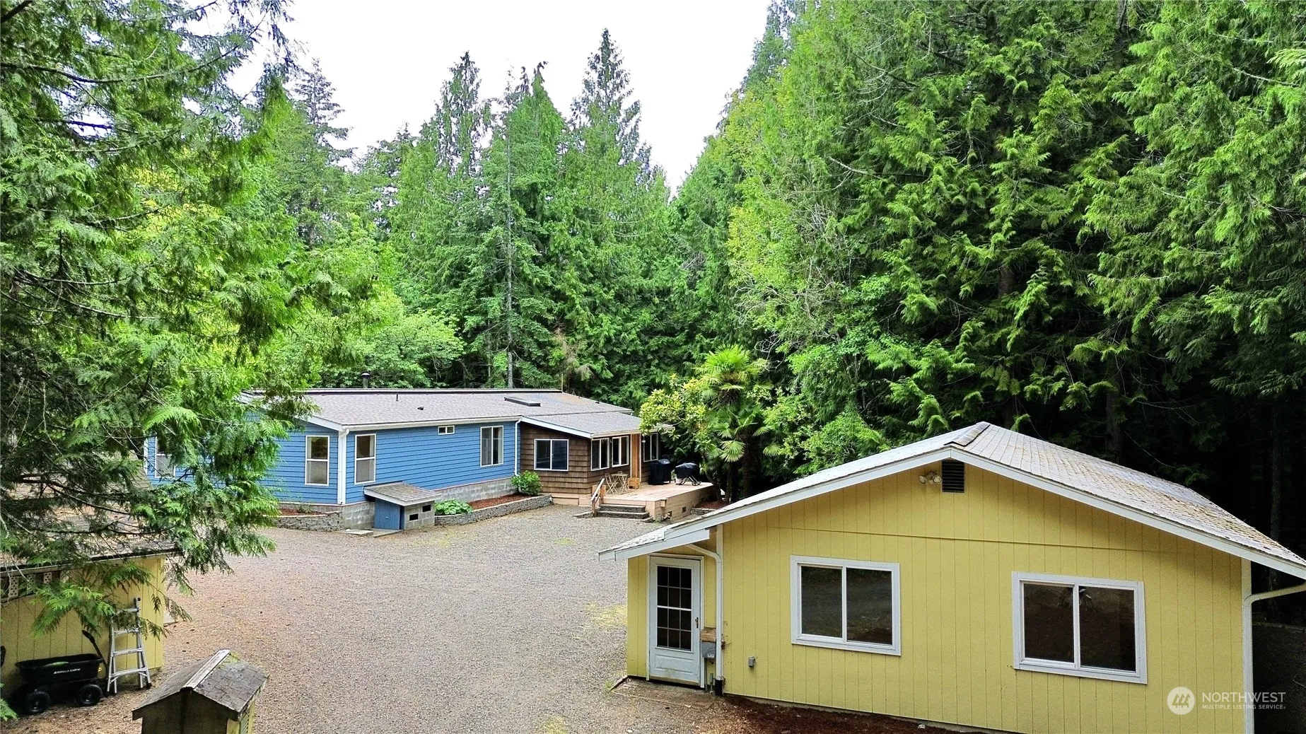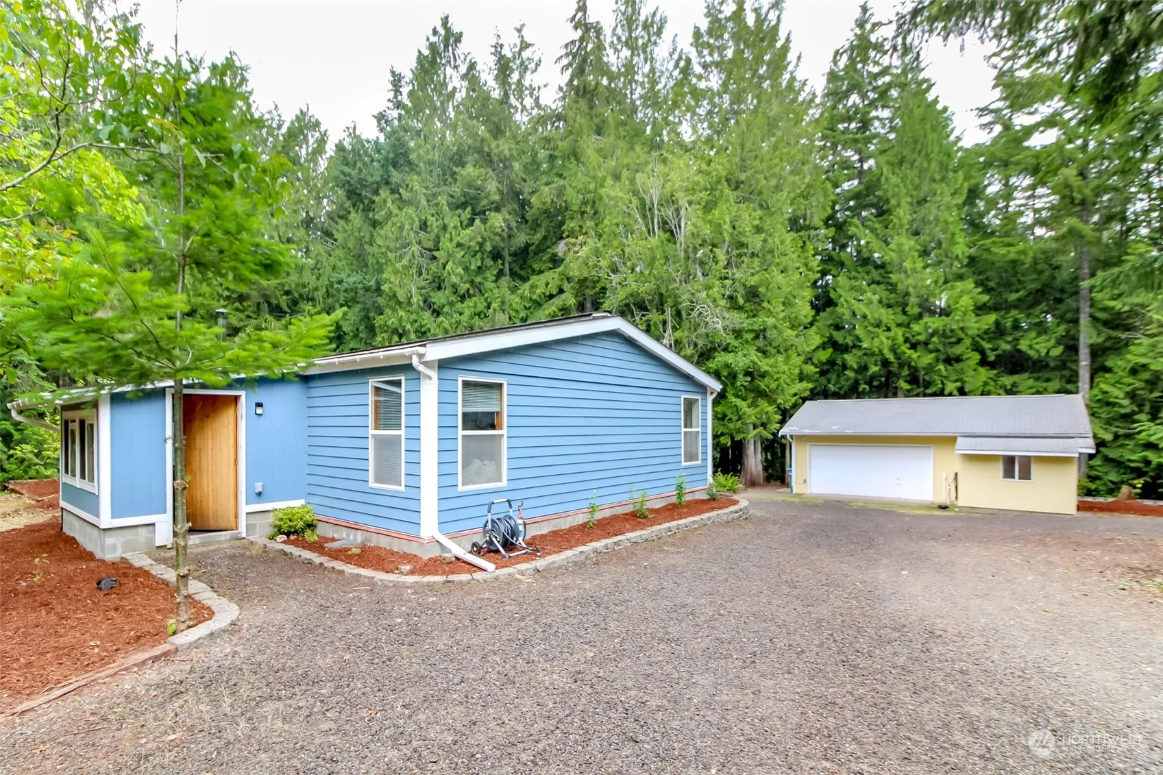 Welcome home to this stunning three-bedroom, two-bathroom residence showcasing vaulted ceilings, an open-concept layout, granite countertops, and hardwood floors. The property boasts a large parking area ideal for boats and RVs, full RV hookups, outbuildings, and a detached garage with an attached office that offers potential for an ADU. Situated on a 5-acre parcel with a gated driveway and bordering a creek, this is a truly beautiful place to call home!