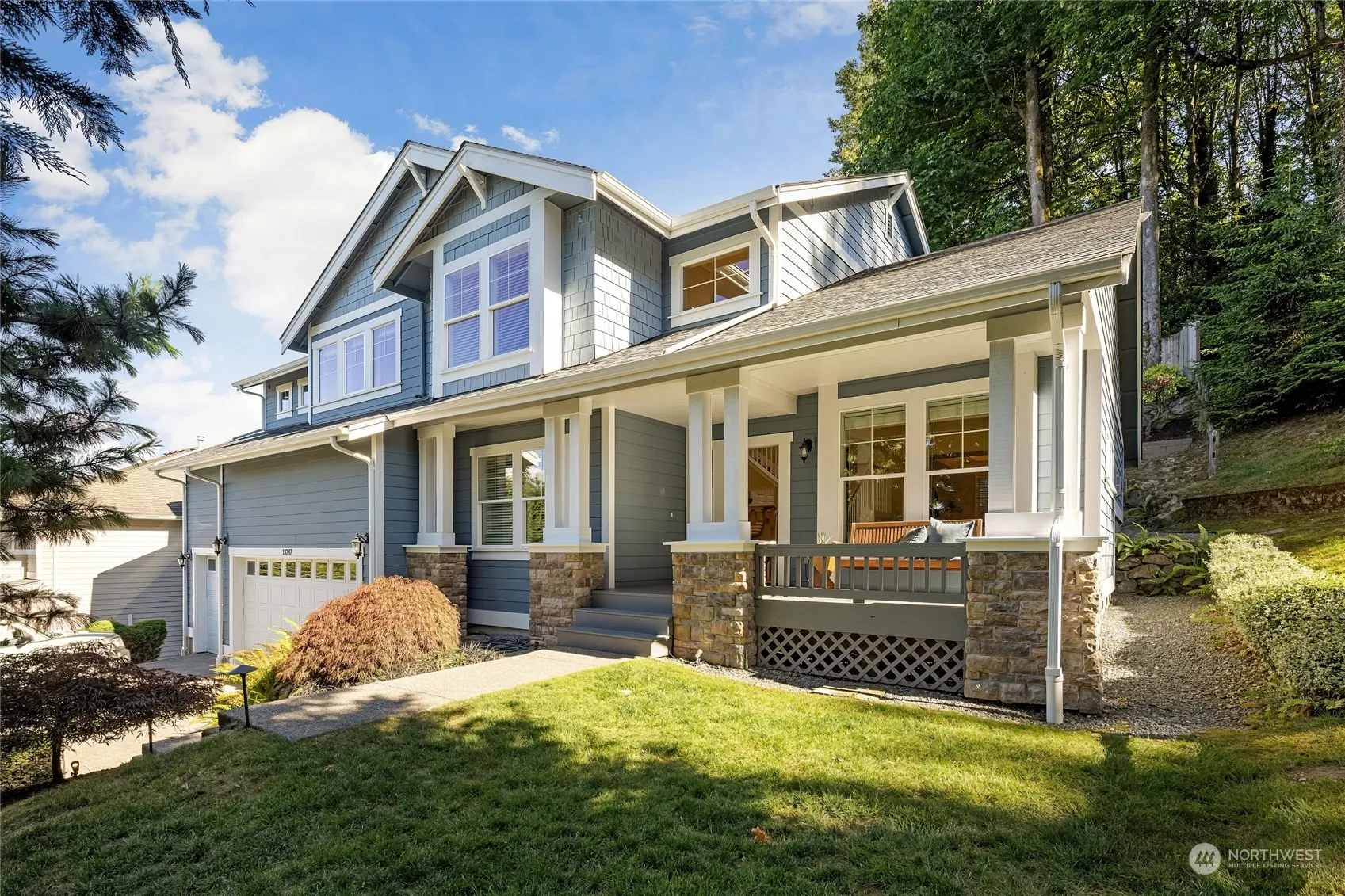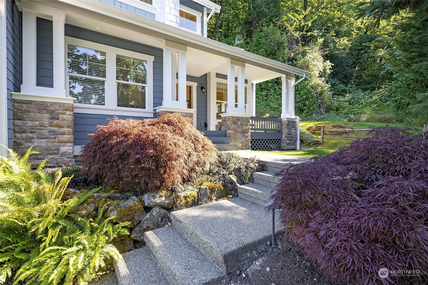 Backing up to a lush greenbelt, this quiet cul-de-sac location offers rare privacy & seclusion for a beautiful craftsman style home. Rocking-chair front porch, grand entry with gleaming oak hardwoods, vaulted foyer & elegant staircase. Spacious home office and formal living & dining rooms. Well-designed kitchen, casual dining area & wired media room all connect to the sunny landscaped garden with multiple decks for entertaining. Upstairs find the indulgent primary retreat with 5-piece bath & territorial views plus 2 more beds, bath, laundry & large family room or 4th bedroom. Pre Inspected! Warehouse size 3 car garage with loft storage. Central A/C! Great commuter location has easy access to restaurants, shopping, parks, I-5 & light rail.