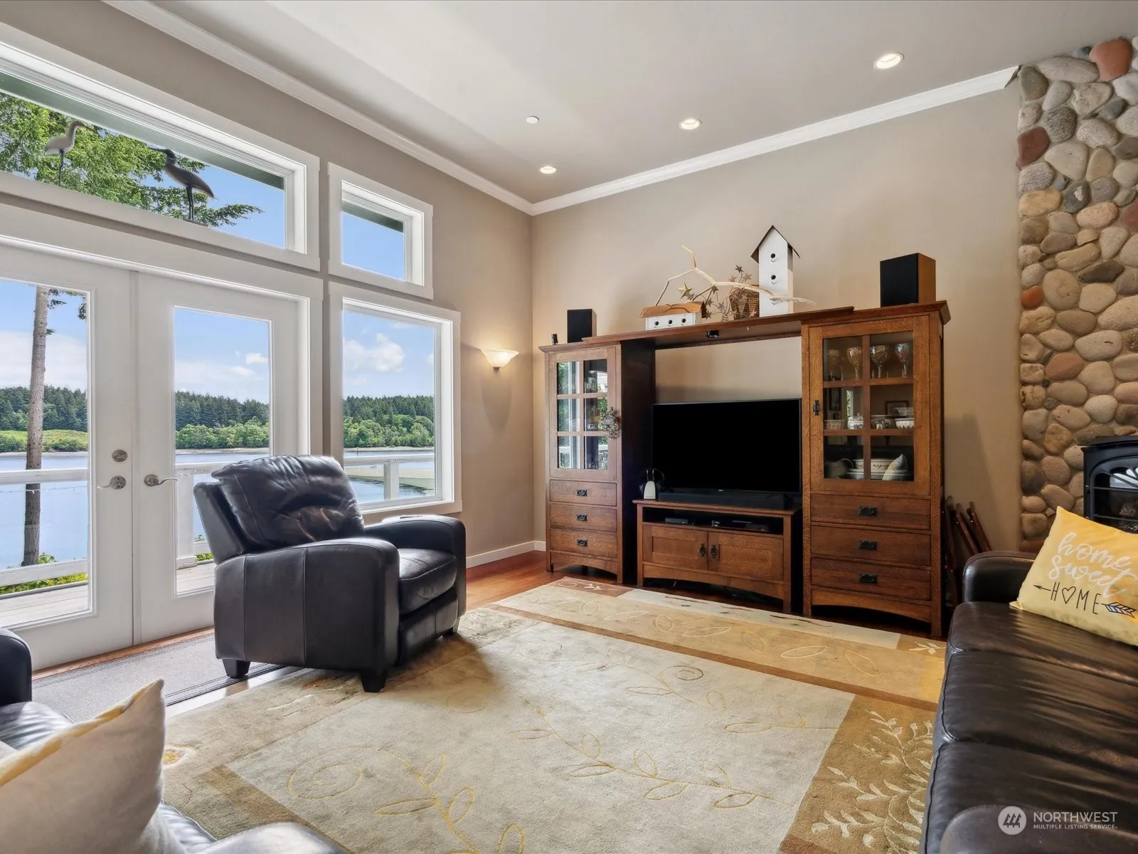 Welcome to your private waterfront retreat in the gated community of Driftwood Pt. This captivating home on 1.2 acres offers an idyllic get-a-way. Enjoy stunning panoramic views of the water from almost every room. The open layout enhances the airy ambiance, with expansive windows inviting natural light and showcasing the picturesque scenery. This property boasts direct beach access, with protected deep-water moorage, perfect for enjoying water sports or simply relaxing by the water’s edge. Embrace the essence of PNW waterfront living in this beautifully appointed home, where every day feels like a vacation.