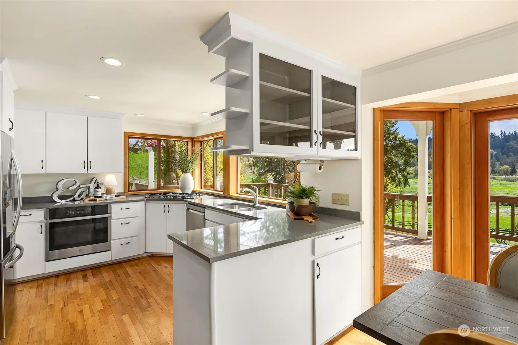 Introducing a countryside haven of Cherry Valley farmland. Spectacular views overlook rolling pastures & tranquil creek winding through the landscape. A wall of windows from kitchen, dining and living room showcase the stunning views. Lower level with private entrance could be used for separate living quarters. Upstairs feat. primary suite, laundry & 2 add. bedrooms. 9-stall barn w/tack room, fenced paddocks, chicken coop & fenced arena. Enjoy the convenience of A/C, a hardwired generator & electrical setup for EV car charger. Huge SHOP/Garage offers storage, workspace & unfinished ADU upstairs. Embrace the country lifestyle with city conveniences in this remarkable home. 8 minutes to downtown Duvall. Additional acreage available
