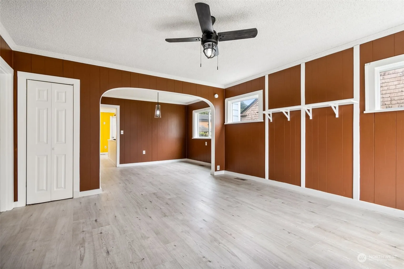 Covering 1410 sq. Ft., the fully fenced property includes a single-car garage, a new roof, fresh paint, new plumbing, and flooring throughout. The backyard fencing offers the flexibility to be removed, providing ample space to park a boat or RV. The renovated kitchen stands out with butcher block counters and brand-new appliances. A walk-in pantry adds convenience, making it an efficient space for your culinary needs. Adjacent to the kitchen, the living spaces have been updated with modern light fixtures, creating a bright and welcoming atmosphere. The main bathroom has been overhauled with bright finishes, making it a pleasant, functional area; an additional 1/2 bath is located upstairs. Utility room offers ample storage and utility space.