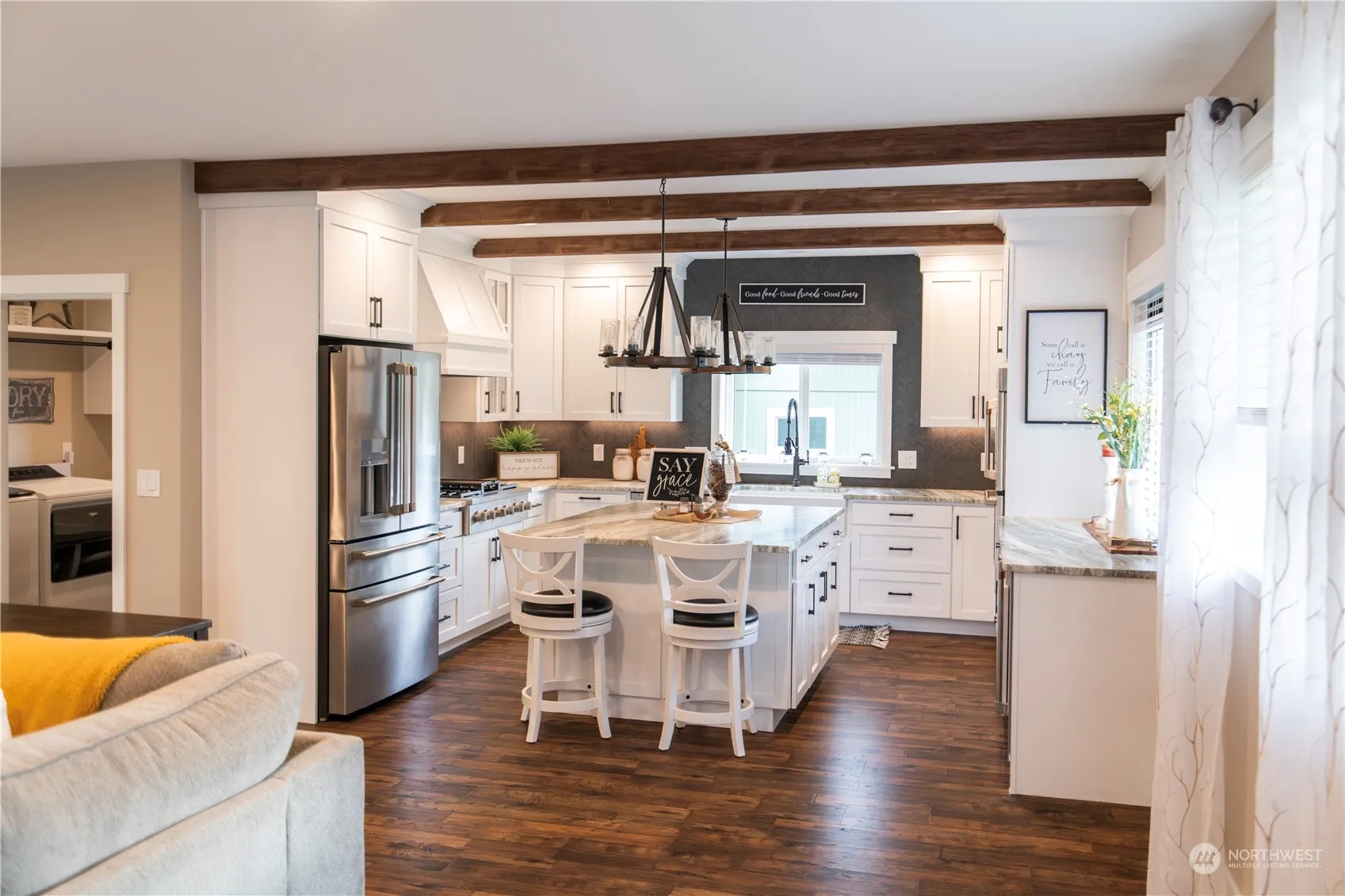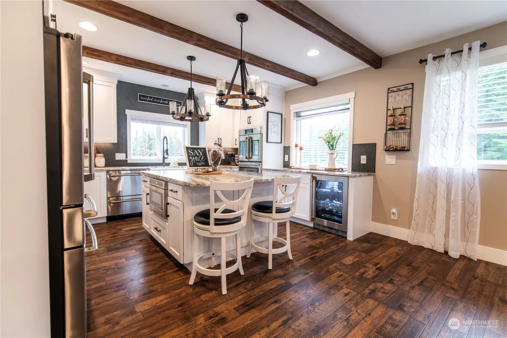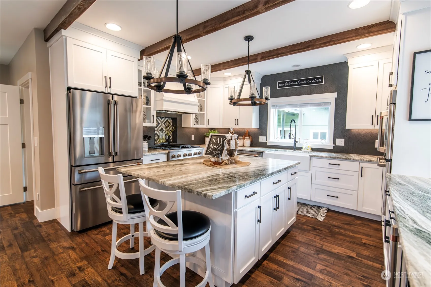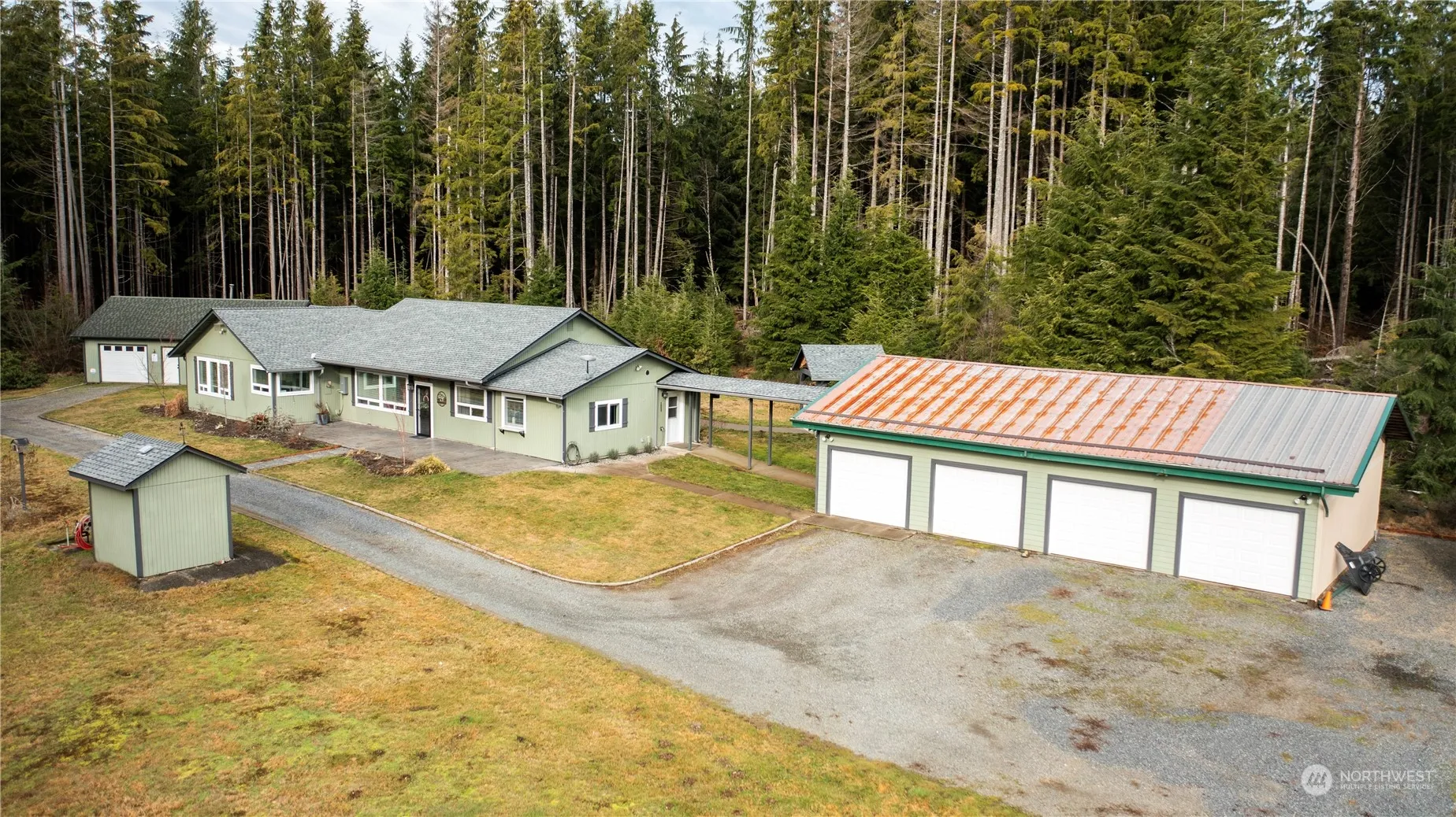 Commanding view of Mt Pilchuck from inside & out of this meticulously maintained 2000+ asf rambler on 15 acres of perfect privacy. Great room concept encompasses the full functionality of this floor plan. Gourmet chef’s kitchen w/ SS appliances, granite slab counters & center island, & restaurant style pass thru window opening to front patio. Home is filled w/ natural light from large windows & skylights galore. Oversized primary suite boasts sitting area/alcove, walk-in closet, gorgeous ensuite w/ custom stone backsplash & inlays. Room for all your toys! 50 amp RV hook up & clean out. Detached 4 car garage. Wood stove heated detached shop & single car garage. Whole house propane 2200kkw generator. Property full of hiking trails!
