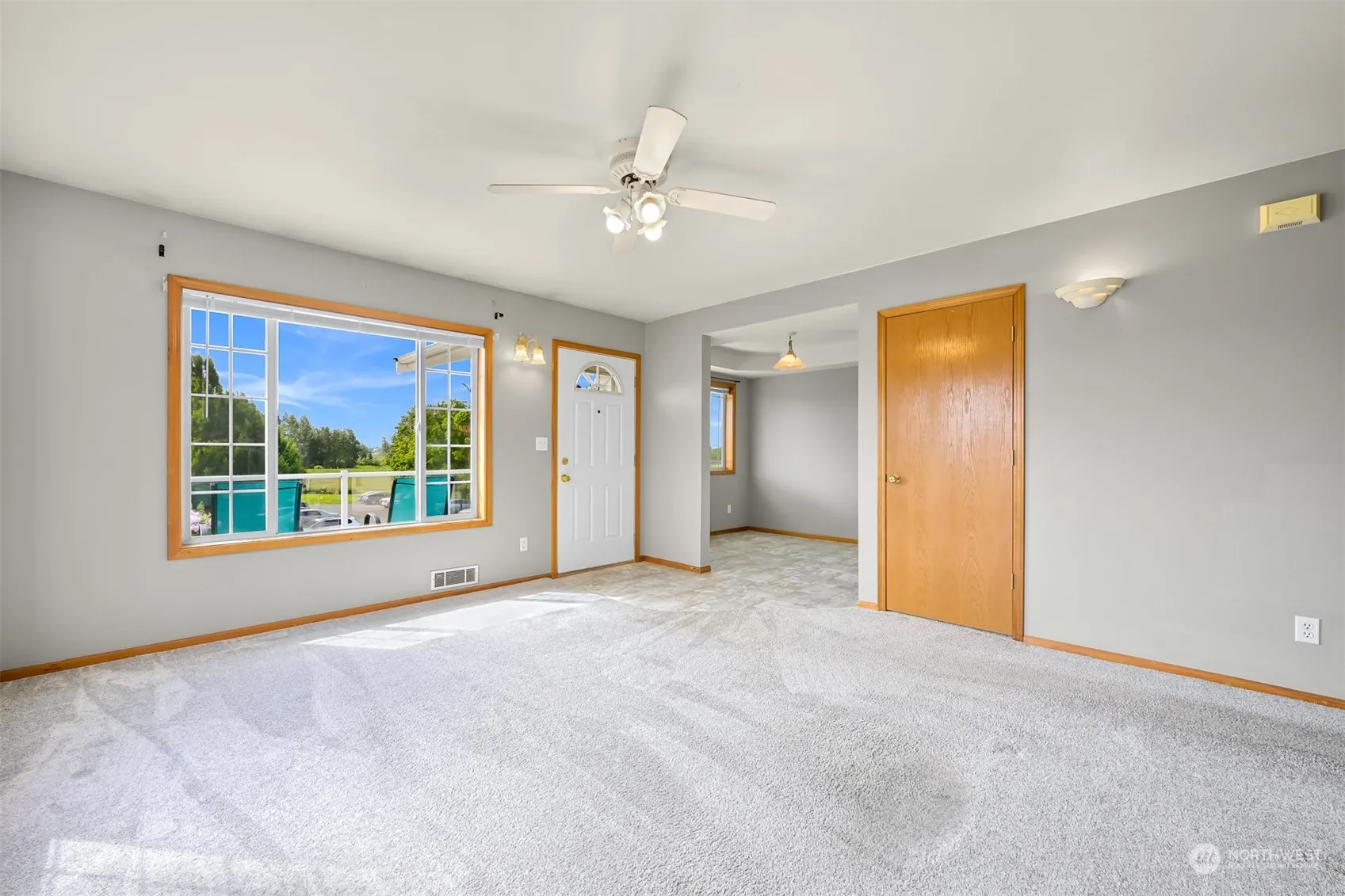 Top-floor corner unit in the heart of Lynden! Stunning views of Mount Baker and farmlands from the spacious private deck. One of the two bedrooms features a Murphy bed and built-in shelving and drawers. Solid wood cabinets and brand new vinyl flooring in kitchen/dining and bathroom. The Solatube skylight provides ambient natural daylight in the kitchen. In-unit washer & dryer is included (washer is brand new). Brand new water heater. Comparatively low HOA dues cover water/sewer/garbage. One assigned parking space plus ample guest parking. No rental cap.