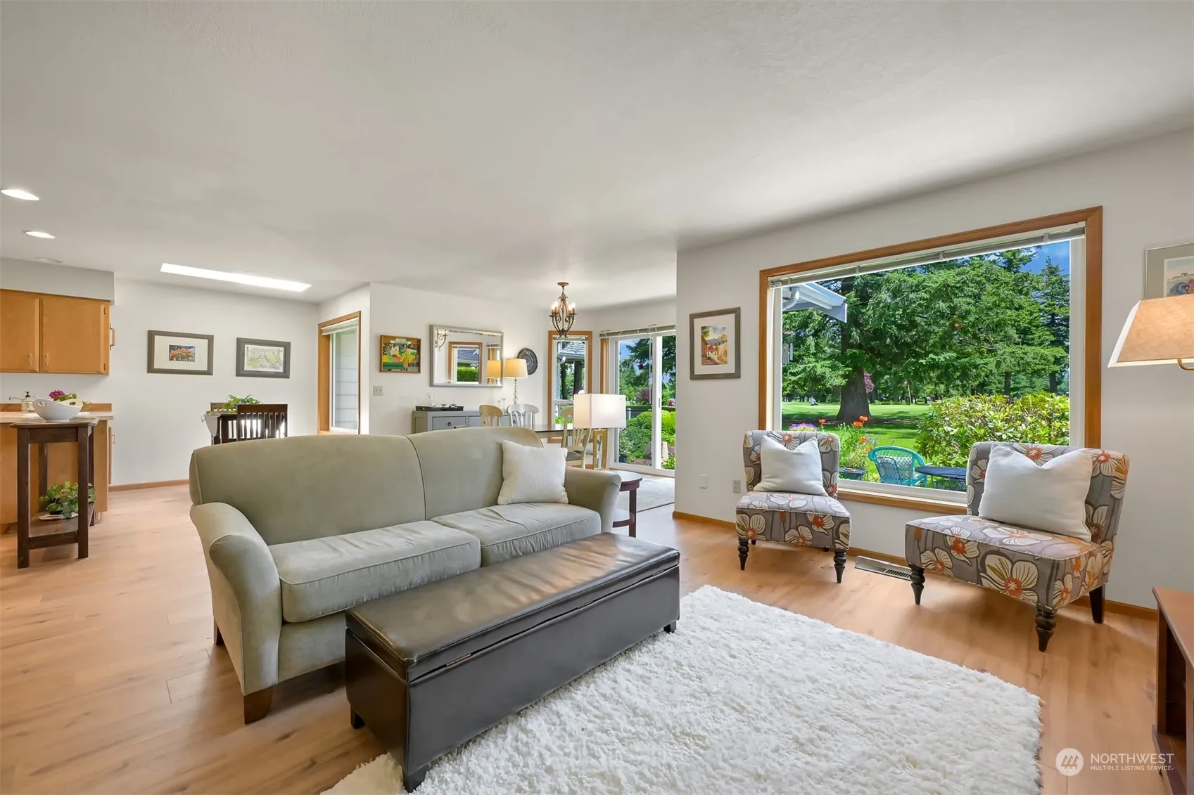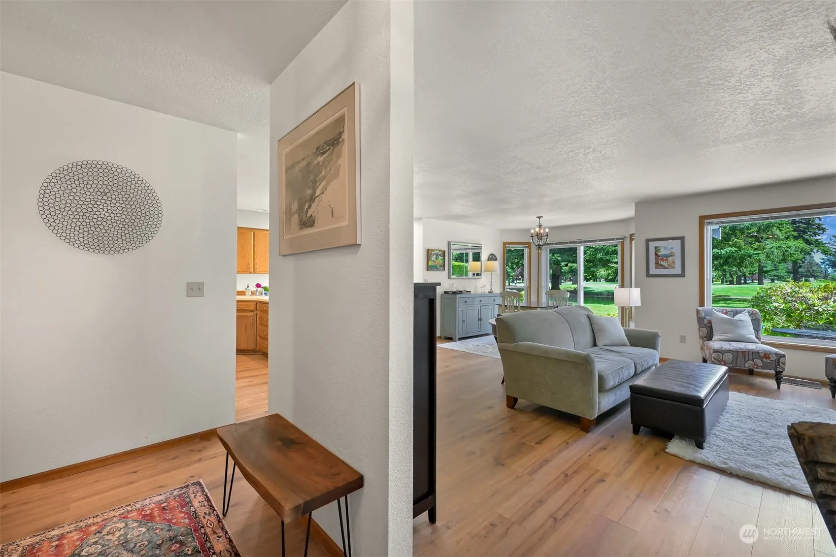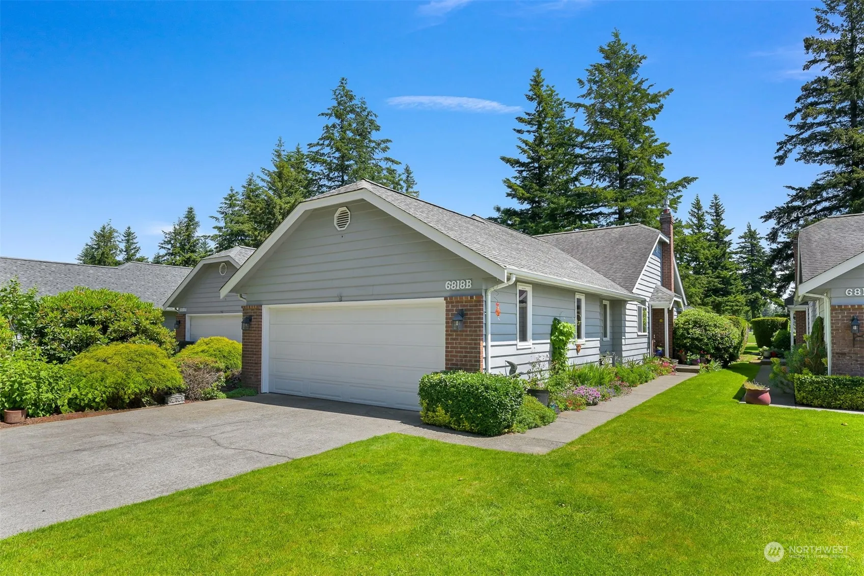 Welcome to condo living on the Raspberry Ridge GC. This lovely condo looks out toward the 5th hole and offers views of the course and mountains. Single level home that feels less like a condo with a large 2 car garage & private driveway. Step inside to an open & spacious main living space blending with the kitchen and dining. Brand new laminate flooring adds a contemporary touch & easy to maintain. Two bedrooms including a primary suite with walk in closet & private bathroom. Small flex area off laundry room. The back patio offers a gas hookup for your barbecue. Raspberry Ridge is a sought after 55+ community with easy access to Bellingham and Lynden while offering access to a quick round of golf or enjoying the game from your patio.