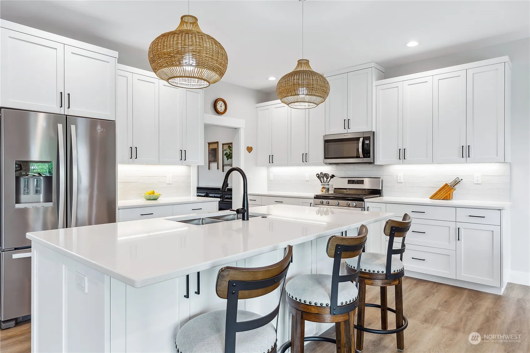 Welcome to your dream home! Built in 2022, this 4-bedroom, 3-bathroom beauty is situated on a bright and sunny lot, offering an abundance of natural light creating an open and airy feel. Main floor primary bedroom features a 5 piece bathroom and huge walk-in closet. The expansive family room upstairs provides the perfect space for entertaining, relaxing, working or creating a home theater. The spa-like bathrooms are designed for ultimate comfort and relaxation, and each bedroom is equipped with its own ductless mini-split system for personalized climate control. The home features durable vinyl plank flooring, sleek quartz countertops, ample storage and a cozy gas fireplace. Step outside to a low maintenance yard and lovely, covered patio.