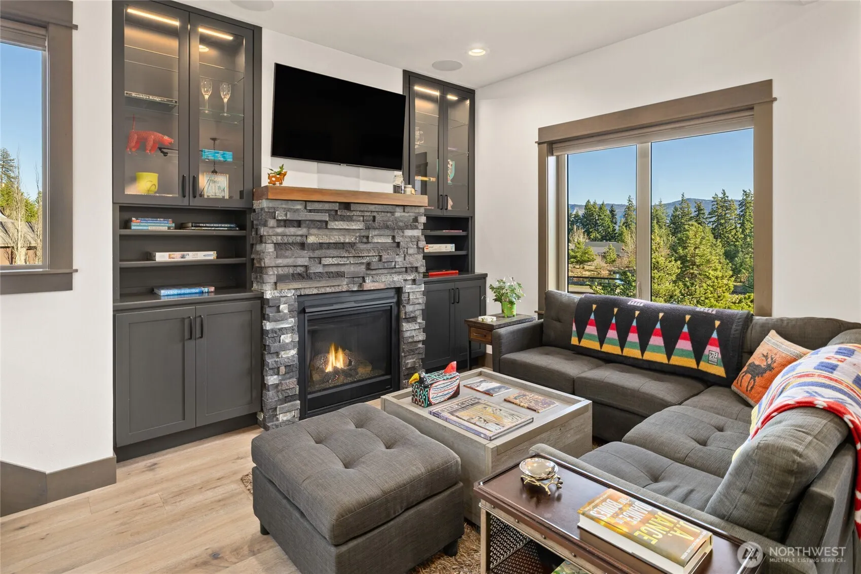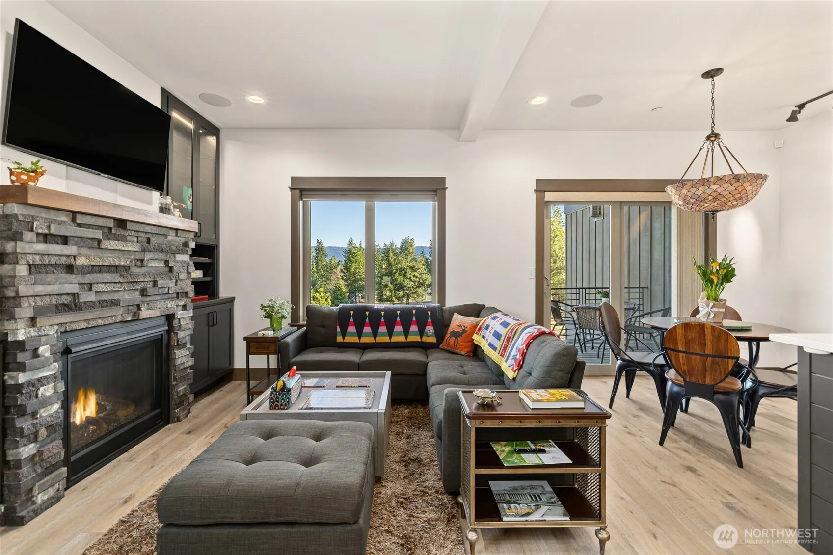 Premier Cascade Reach End Residence with panoramic views-sold fully furnished. Rare chance to own what many consider the premier “end unit of all end units,” showcasing front-row views of Lower Suncadia Lake, the signature waterfall and bridge, Peoh Point, and the South Cle Elum ridgeline beyond. Located in the highly sought-after Resort Village community, this home enjoys southern exposure, added privacy, and an extra wall of windows that fills the great room with natural light and tranquil water views. From sunrise coffee on the deck to evening sunsets over the lake and ridgeline, the scenery becomes part of everyday life. Originally purchased as a presale and thoughtfully customized, the home features an oversized primary suite with sitting area and fireplace, built-in Dolby surround sound, and multiple outdoor spaces including two elevated decks and a private walkout patio—perfect for relaxing after a day of golf, biking, or exploring the resort. Freshly painted throughout and impeccably maintained by a single part-time owner, the residence has never been rented and shows like new. Sold fully furnished for a true move-in ready experience. Main level bonus room is perfect for bunks, office, or den. The oversized one-car garage offers space for bikes, skis, and golf gear. Paved trails lead to the Swim & Fitness Center, Club pool, and Suncadia Social’s restaurants, market, and shops just steps away-ideal for immediate enjoyment or future vacation rental potential.