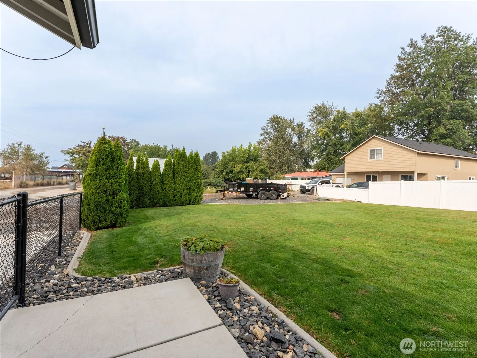 Perfectly situated on a dead-end lane, this three-bedroom, one-level home is cozy and comfortable. The layout is convenient, with the primary suite at one end and two bedrooms at the other. Vaulted ceilings and a four-stool eating bar highlight the great room and dining area. A large pantry provides extra storage. The primary suite has a generous walk-in closet. The primary bath features ample counter space. The yard is spacious with oversized RV parking. Entertaining is easy on the back patio. There is no HOA. The lot offers irrigation water and mountain views. The location is convenient, just off N. Nile Ave.