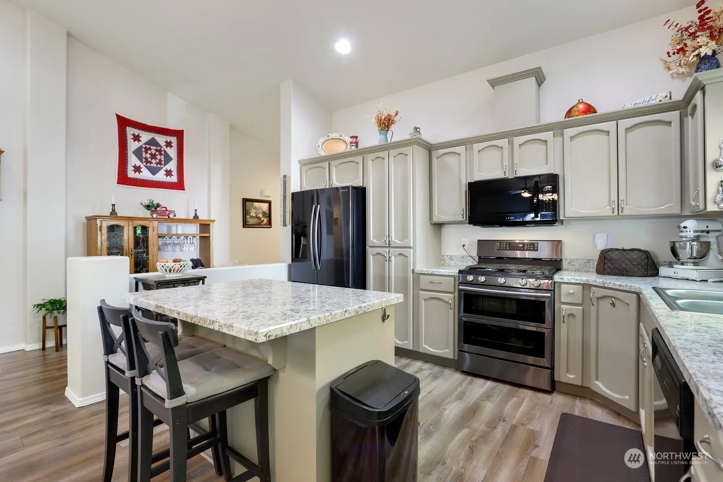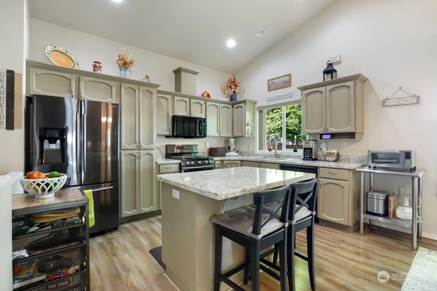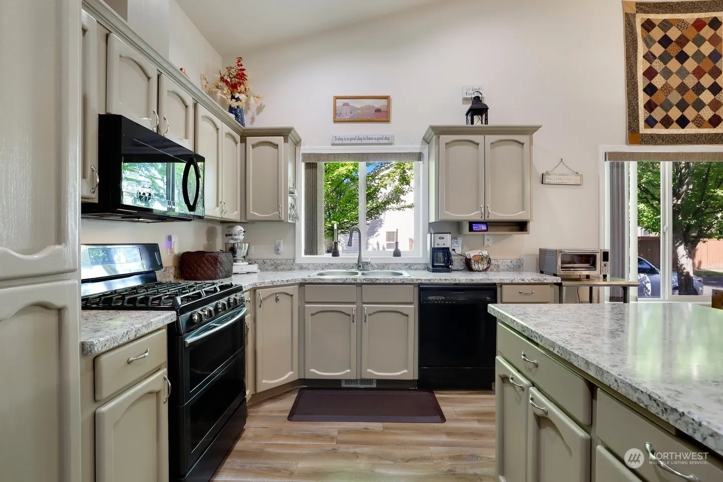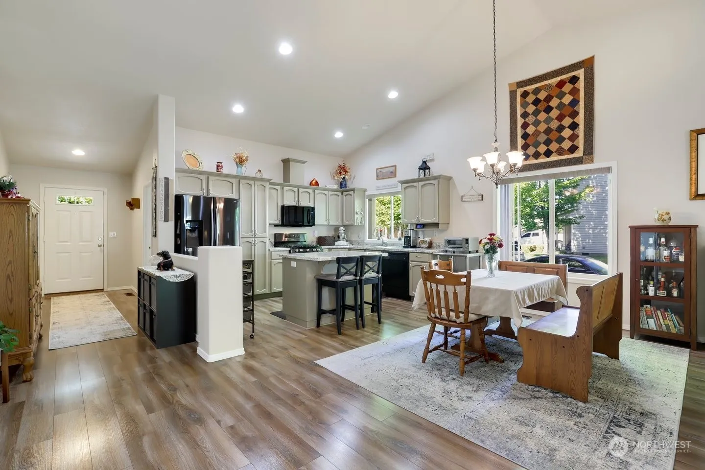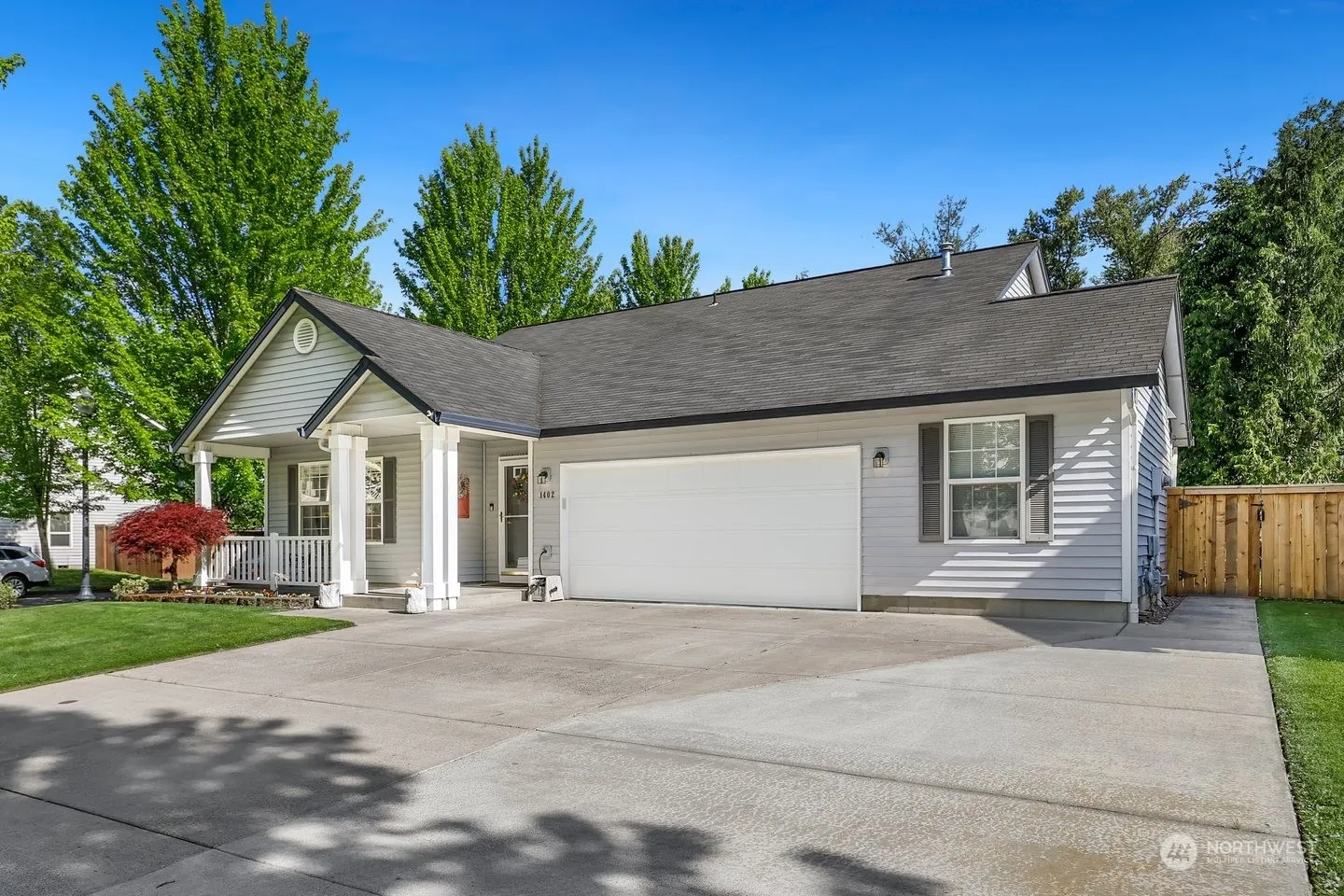 This beautiful and meticulously maintained single level Ranch home is just minutes from downtown Battle Ground tucked away in a quiet neighborhood on a large private corner lot near a green space. Home features Luxury Vinyl Plank throughout Entry to Bedroom 1 (Carpet-Closet-Office), Kitchen (Island-Pantry-SS Appliances-Vaulted Ceiling) Dining room, Living Room (Gas FP-Vaulted Ceiling-Slider to Patio) and Hallway to Laundry Room (Vinyl-Cabinets-Hookups), Bedroom 2 (Carpet-Closet) and the spacious Primary Bedroom (Carpet-Vaulted Ceiling-Separate Walk in Closets-3/4 Bathroom). The Amazing and Huge Fully Fenced Backyard has a Covered Patio (BBQ area), Large Open Patio w/ Gazebo, Gardening/Tool Shed and Lots of room. Driveway has RV Parking Pad.