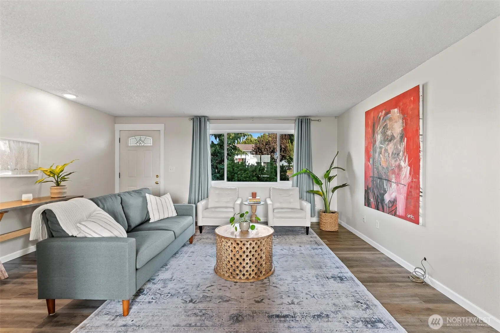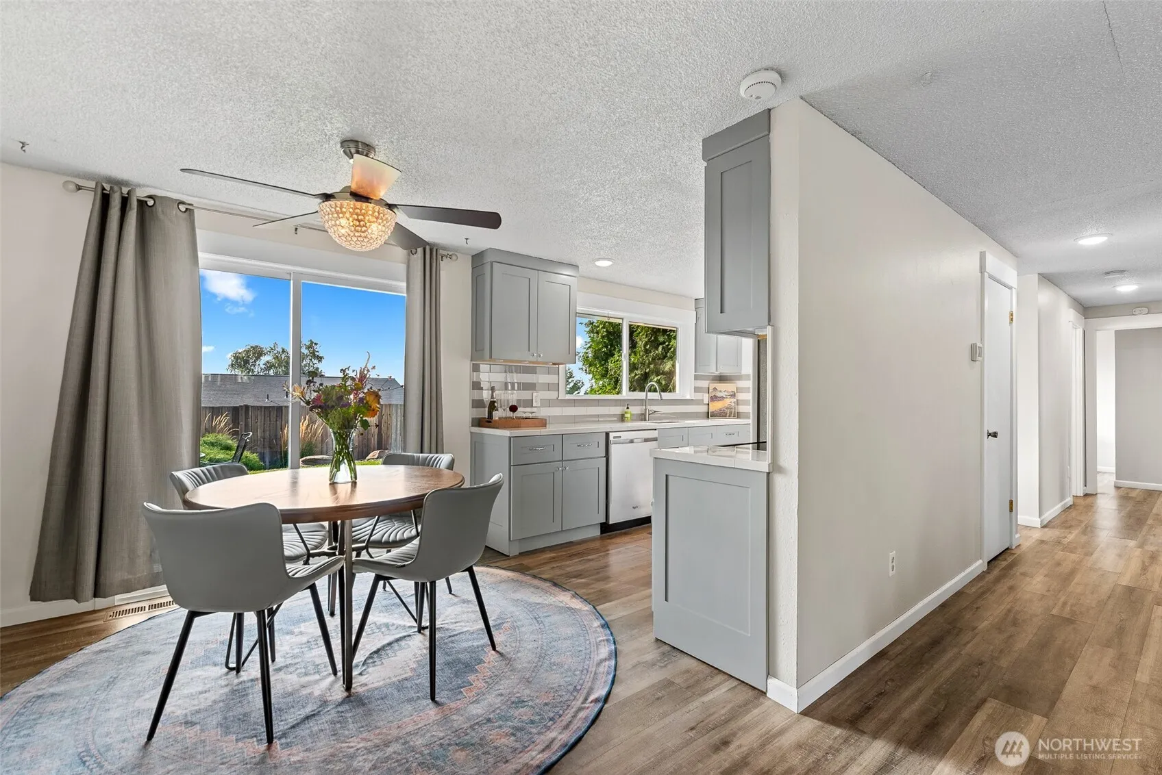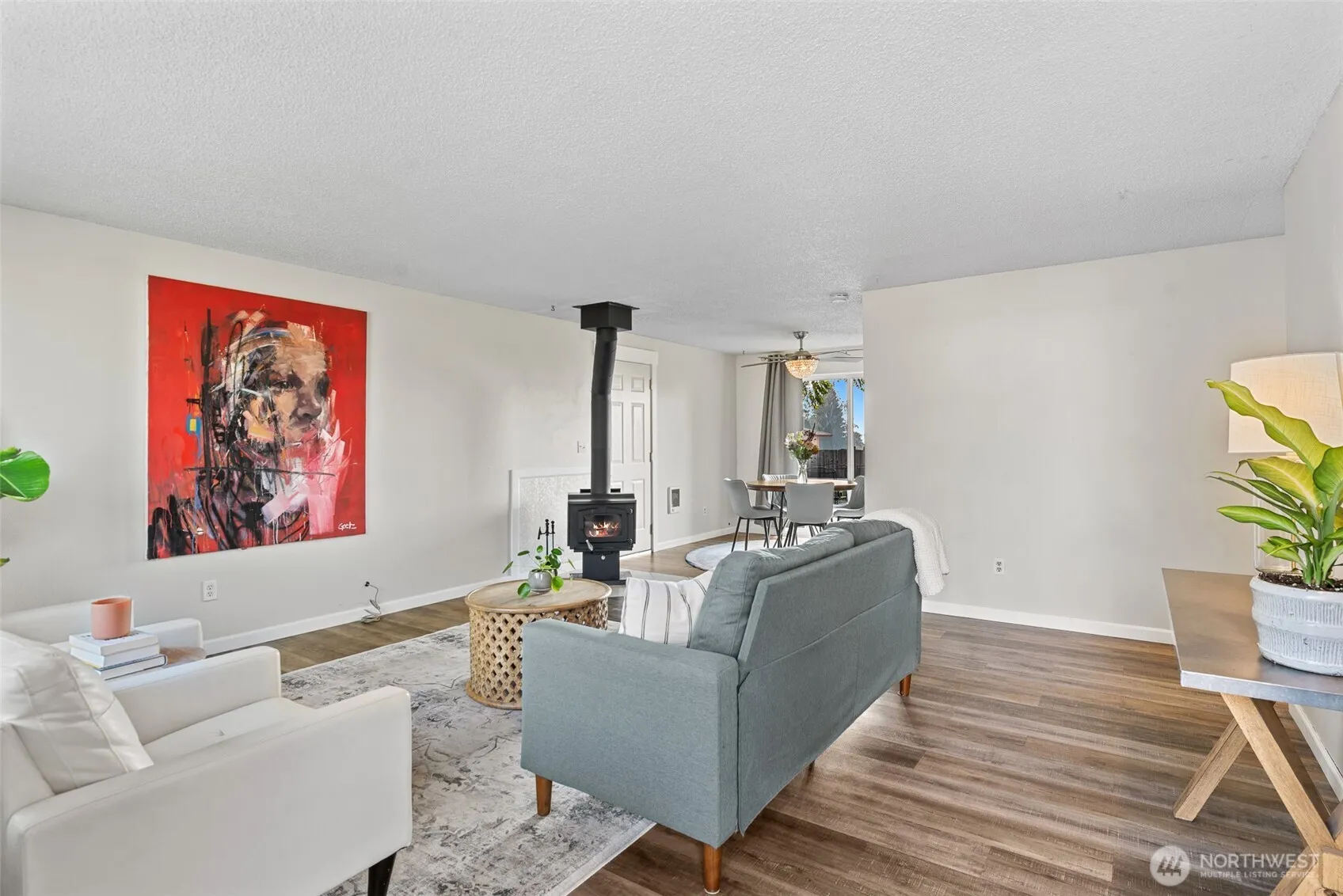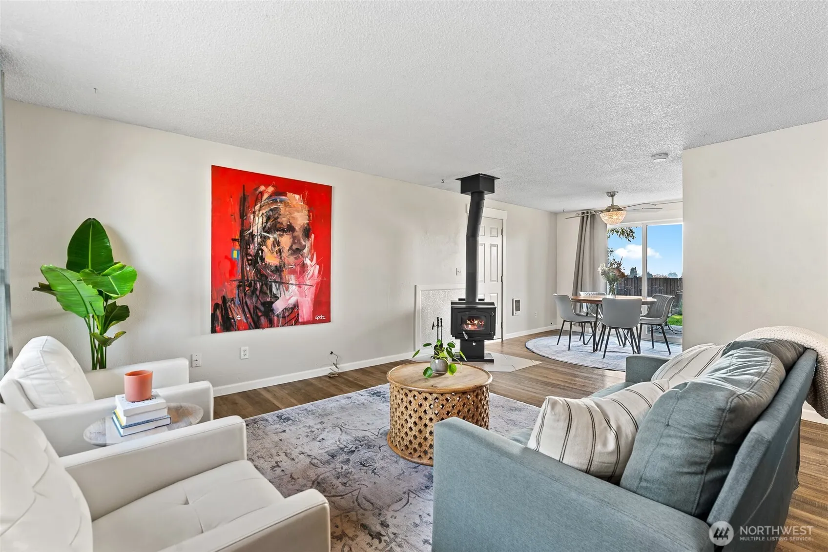 Charming 3-bedroom, 1-bath home offering 1,094 sq. ft. of comfortable living on a .19-acre lot with lovely mountain views. Thoughtful updates include a new roof (2024), newer vinyl windows, added attic insulation, and a 2020 AC unit for year-round comfort. The updated kitchen features a pantry and small utility area, while the living area boasts portrait windows and a cozy wood-burning stove. The updated bathroom includes a heated floor for extra comfort. Outdoors, enjoy mature landscaping, a fully fenced backyard with irrigation, and a well-maintained front yard with curbing. Additional highlights include ceiling fans, gutters, and an attached 2-car garage. Move-in ready and inviting! Professionally Inspected.