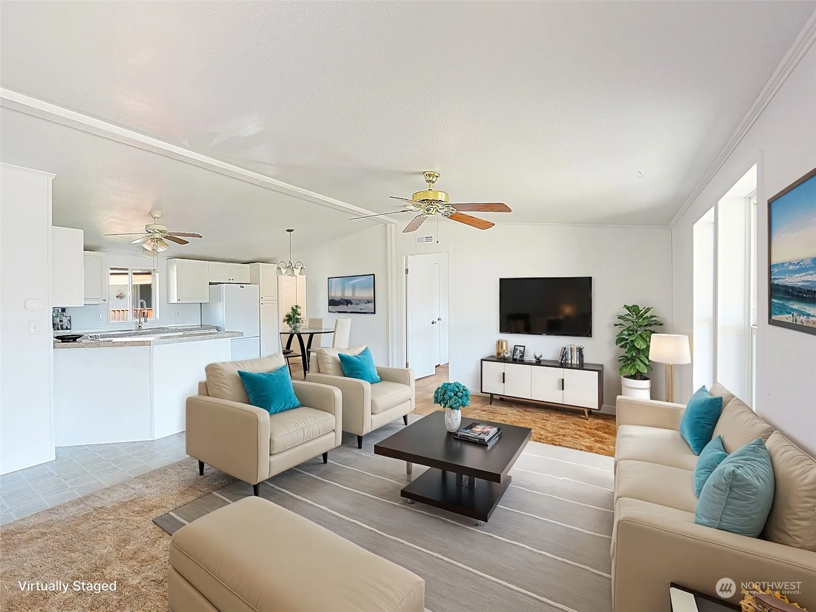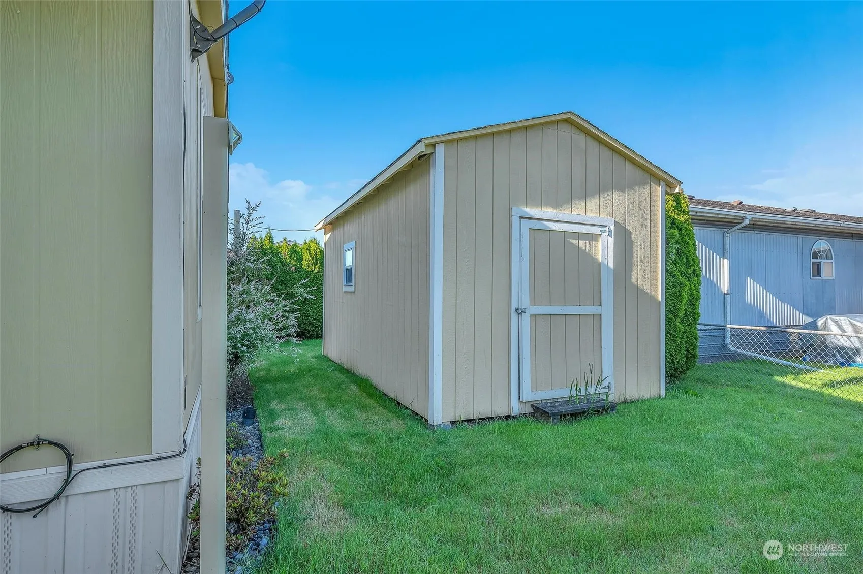 Fresh paint throughout the inside & HUGE price improvement. All appliances in home included in sale! Truly move in ready 3Bd/2B doublewide Fleetwood MFD home w/ 1080 sqft on a corner lot in 55+ community in the heart of Battle Ground. New roof & asphalt on parking pad under carport. Exterior paint completed a few years ago. Large primary suite, open concept kitchen & living space. Huge 12X18 shop with work bench and storage and loft. Community amenities include Bocce ball court, pickleball court, fire pit, raised bed gardens, club house w/ TV, pool table, kitchen & library! Lots of group activities like pickleball & the coffee & Donut Social! Near hospitals, restaurants, shops.