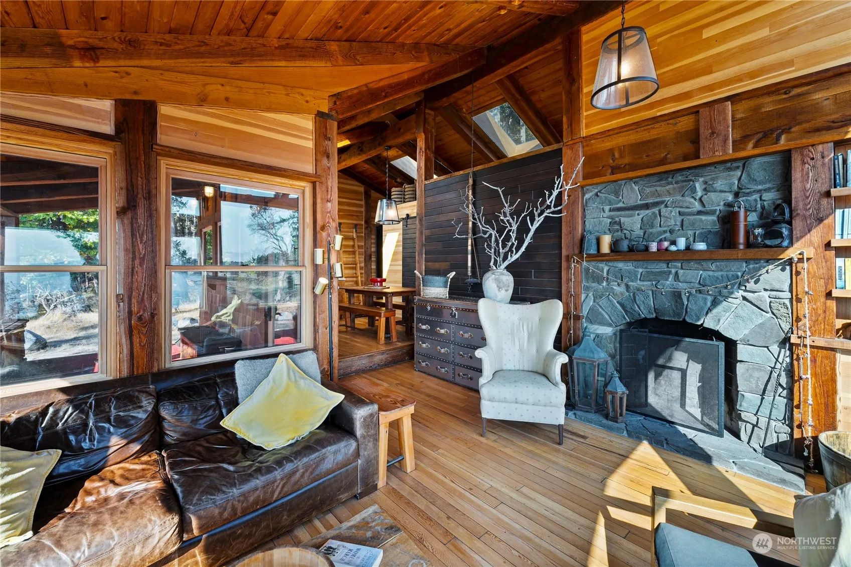 Stuart Island Estate boasts a private deep water 50’ dock, hangar w/airstrip access, multiple building sites w/permitted buoys, and 2081′ of shoreline on 29+ acres w/coves, beaches & rocky outcroppings. Completely remodeled owner’s cabin w/extensive use of reclaimed wood has views of the surrounding islands & Olympic Mt Range. Marble counters & a tile bath countered w/wood floors & ceilings create a rustic yet elegant feel. 2 additional charming guest cottages w/quaint kitchen, 3/4 bath & original stone fireplace. State of the art solar, new septic, excellent well. Paddle board to the state park & surrounding islands, crab in the harbor, fish the waters or hike to the historic schoolhouse; 8 min boat ride to Roche Harbor.