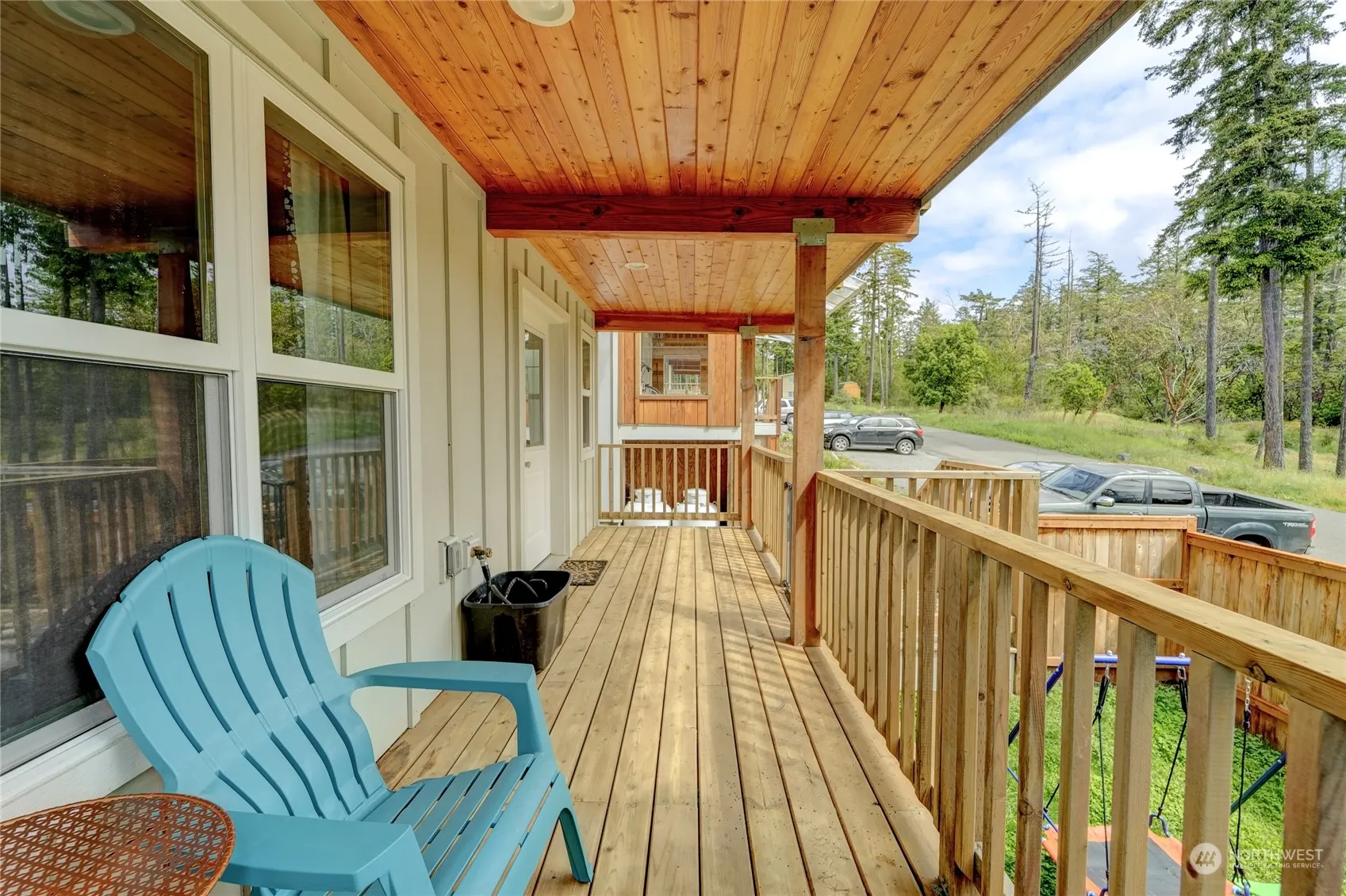 Seize this Finnegan Ridge corner lot home! Perfectly located just moments from Town of Friday Harbor, ferry, schools and more. Modern NW contemporary design, almost new with one owner. Enjoy a welcoming large covered front deck for relaxation next to lush madronas. Main level features an open living room, dining area, kitchen with stainless appliances, ample storage & powder bath. A slider off the dining area leads to a back deck for bbq’s with territorial views. Upstairs offers 2 bedrooms, full bath with laundry area, open flex space leading to upper covered deck for more areas to enjoy the outdoors. Upgraded fenced yard, raised boxes for edible garden or flower beds and bonus 500sf +/- under house storage area. Don’t miss out on this gem.