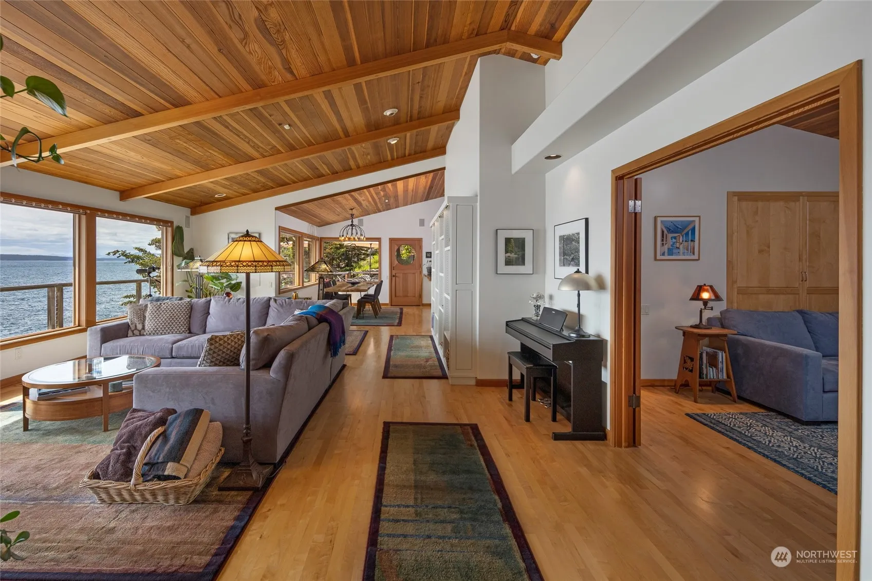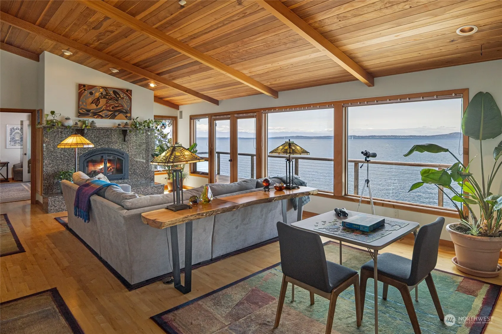 Extraordinary West Side waterfront (125′), 3/4 ac fenced & gated setting. Single level main house (2232)sq ft), detached ADU 720 sq ft VR permit. 2 car garage has bonus room, studio, workroom. Whales, marine birds & wildlife against a backdrop of the Olympic Mtns and Vancouver Island. Large Ipe decks for outdoor observation points, dining, entertaining and relaxing. Large open kitchen, dining area, great room, large wood burning fireplace. Primary suite; walk-in closet, heated tile floor in bathroom, water views. 2nd bedroom, currently a media room & office, has a murphy bed, full bath with heated floor and multiple closets for storage, laundry/utility room. ADU averages 5 star rating & provides income and a wonderful place for guests