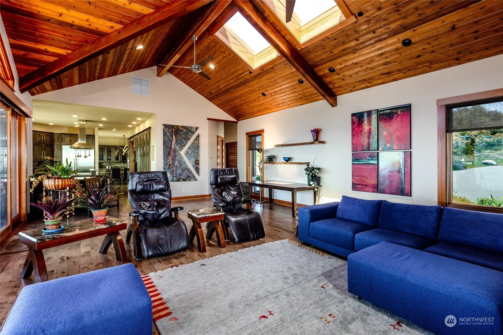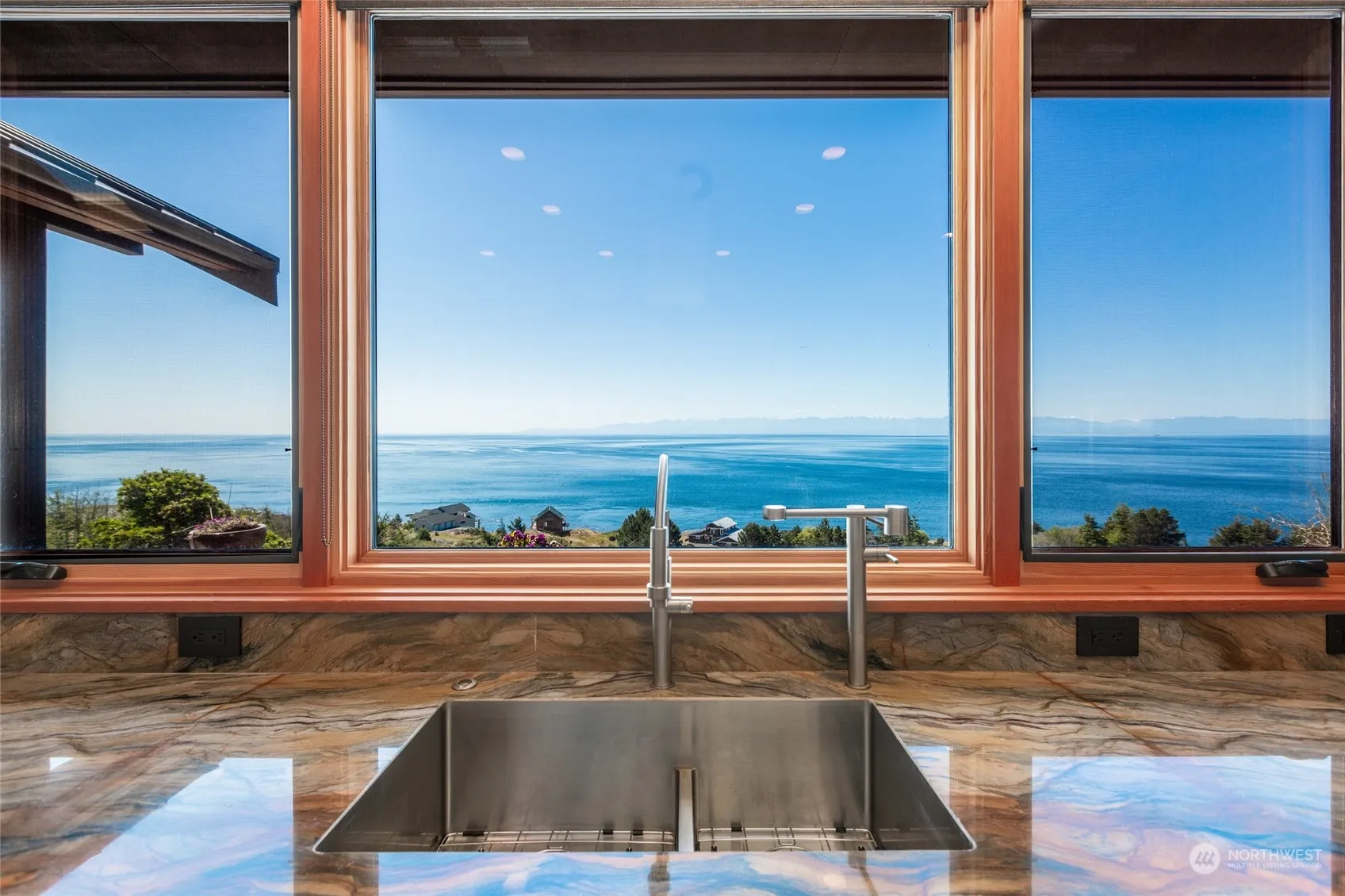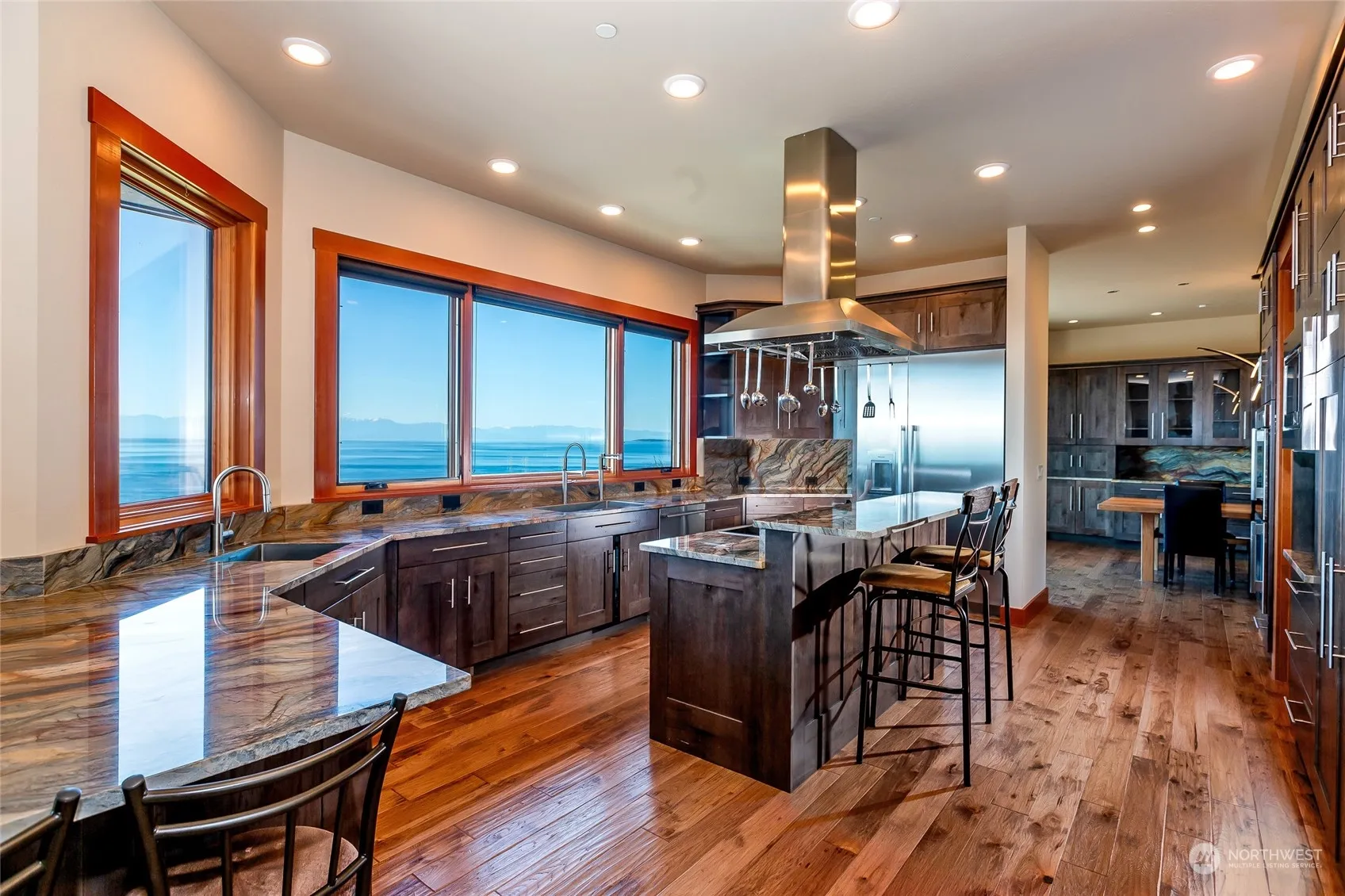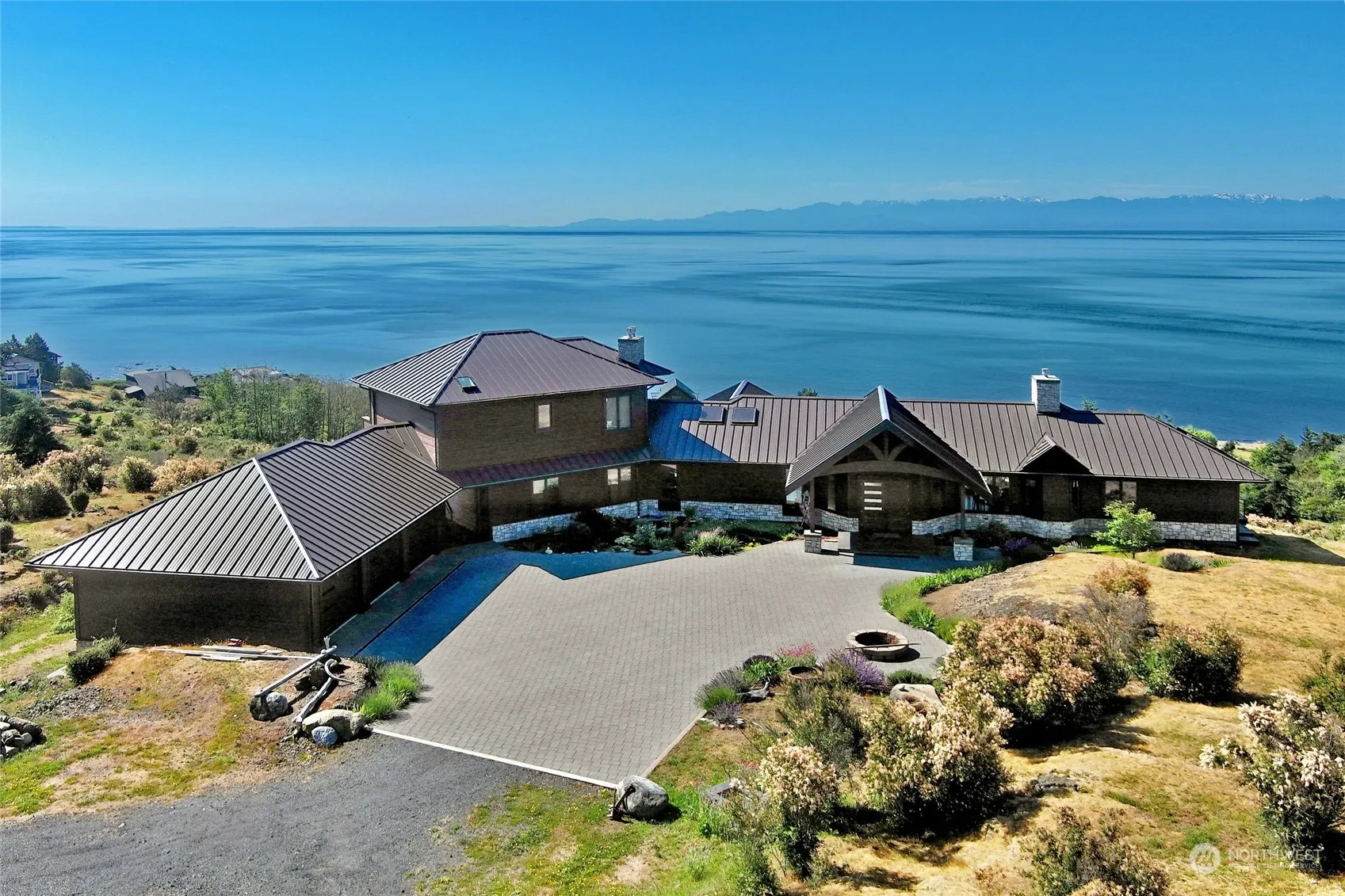 Incredible forever water and mountain views from this south-sloping hillside setting offering all-day sun!! Beautifully designed custom home with 4069 sf, 2 primary bedrooms, 6 total bathrooms, separate guest suite, separate rec room or studio, exercise room with cork flooring, 3 propane fireplaces, Loewen’s StormForce Series impact-rated windows, 10 ft ceilings, central vac, on-demand hot water, fiber optic internet, solar panels, extensive Ipe wood deck, brick paver driveway, 858 sf guest house, 1008 sf 3-bay garage, Tesla power walls, private well and community water, fenced garden with concrete raised beds and upscale shed, 6.79 acres, and beach rights. Attention to every small detail is evident throughout this entire development.