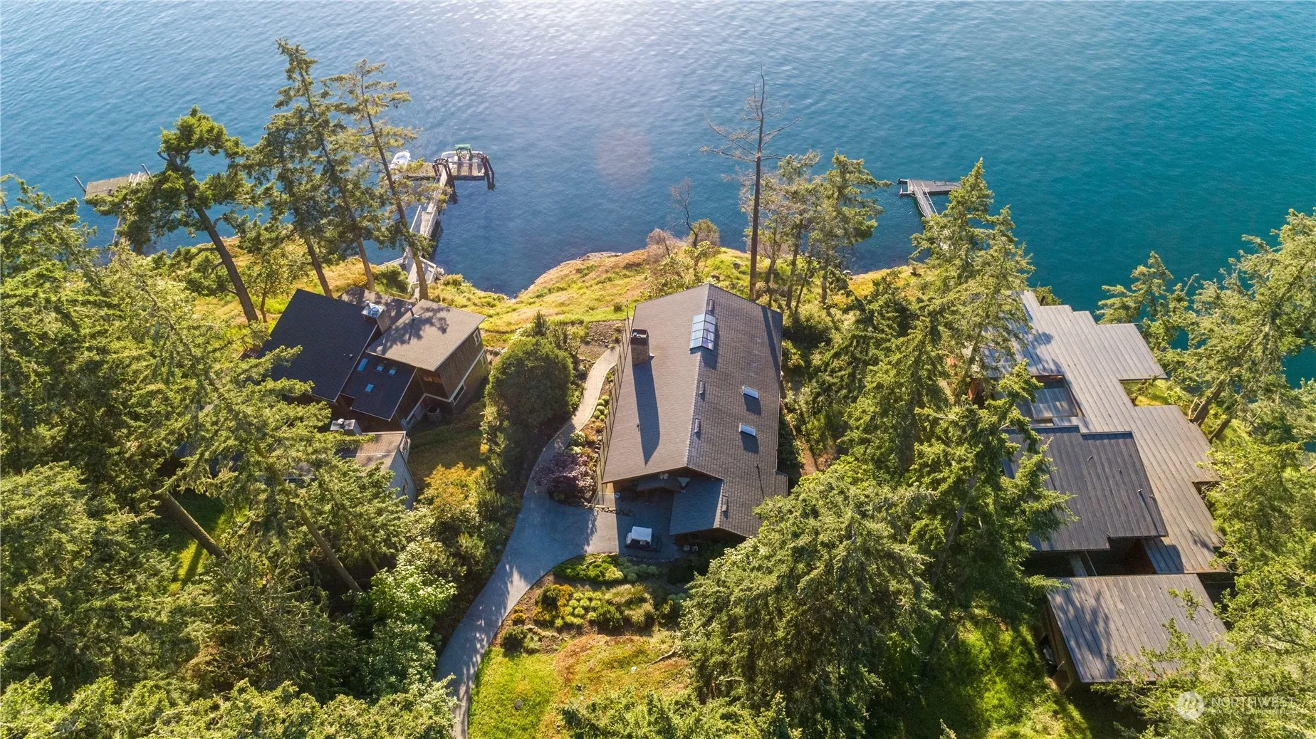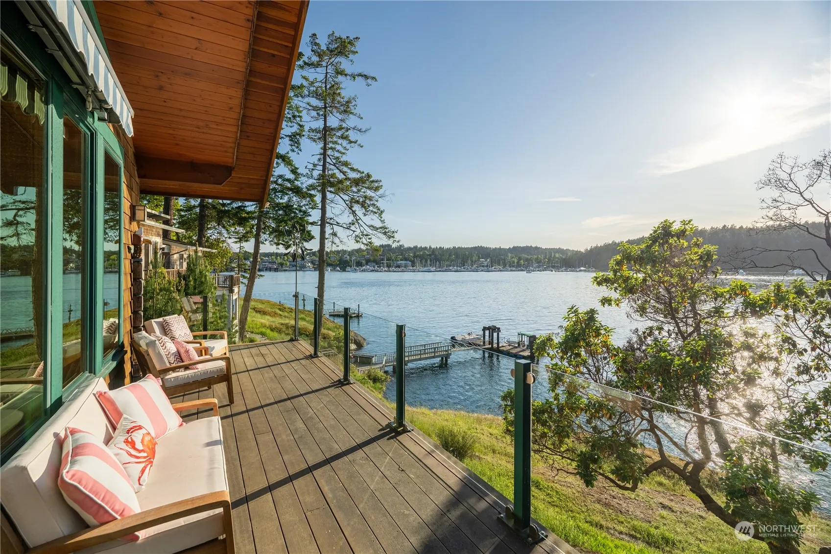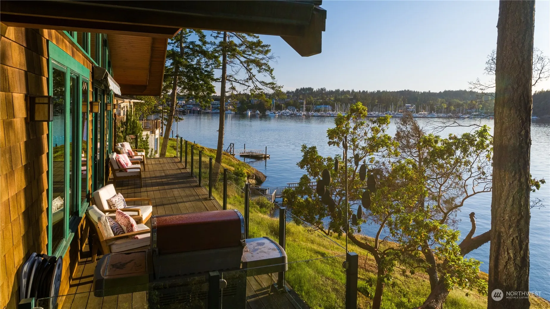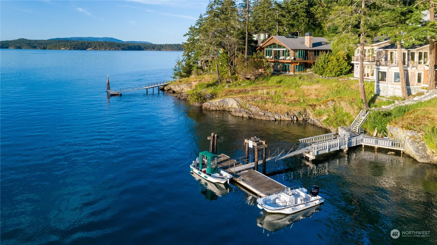 Discover unparalleled luxury in this stunning Brown Island waterfront home with 142 feet of shoreline. Custom-built in 2014, this turn-key residence features 2 primary suites, an additional bed with an en-suite bath, & an office. Enjoy breathtaking views of Friday Harbor, ferries, & seaplanes. Experience seamless indoor-outdoor living with a shared dock, perfect for boating enthusiasts. Sold furnished, it includes an electric golf cart & Boston Whaler. Relish in sunsets, a community pool, & marina access. State-of-the-art amenities include a central vacuum system, security system, generator, & high-speed fiber optics. The best of both worlds: island privacy & a two-minute boat ride to town. Seller is a Licensed RE Broker in the State of WA.
