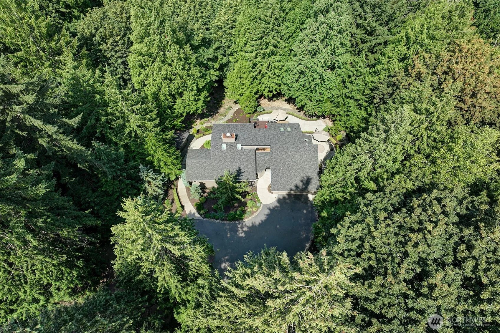 Available Now. Architecturally unique luxury home, cul-de-sac location, on a secluded acre forested lot — over 2 acres just for you! This is a rare gem w/ custom features throughout: AC, designer kitchen with granite, Italian tile backsplash & floor, high-end appliances, vaulted ceilings, custom closets, large energy efficient windows amazing views & ample natural light. Upper level has living areas and Primary BR with 5-piece bath suite. Lower level: 3 bedrooms, 2 bathrooms, theatre with surround sound tech, additional bonus room opens to the back. Impressive grounds with tiered patios, elevated deck, and carefully maint. yard. All landscaping incl. Heated garage, EV charger, plug for generator. Prefer 16-mo lease. Pets CBC, $50/pet/mo.