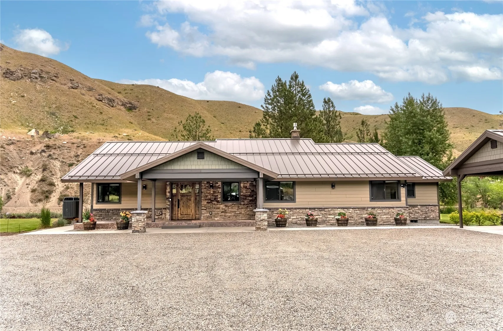 Riverfront Home on 10.50 Acres:Over 1,200 feet of waterfront with stunning river views from inside. The main residence and guest house are fully remodeled with premier finishes inside and out; 3 BD, 2 BA, and gourmet kitchen with an Italian gas range. The charming guest house features 2 BD, 1 BA, and a large sunroom that can serve as a bunk room, studio, or rec room. Enjoy year-round outdoor living with patios, decks, plus there’s a large heated/insulated shop/garage. The second parcel includes an installed well and septic system. Centrally located for year-round recreation: fish from your deck, hike, or bike out your door, and only minutes to high mountain trails. Conveniently situated between Chelan and Mazama. Make it your dream home!