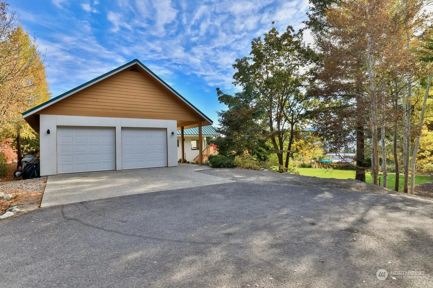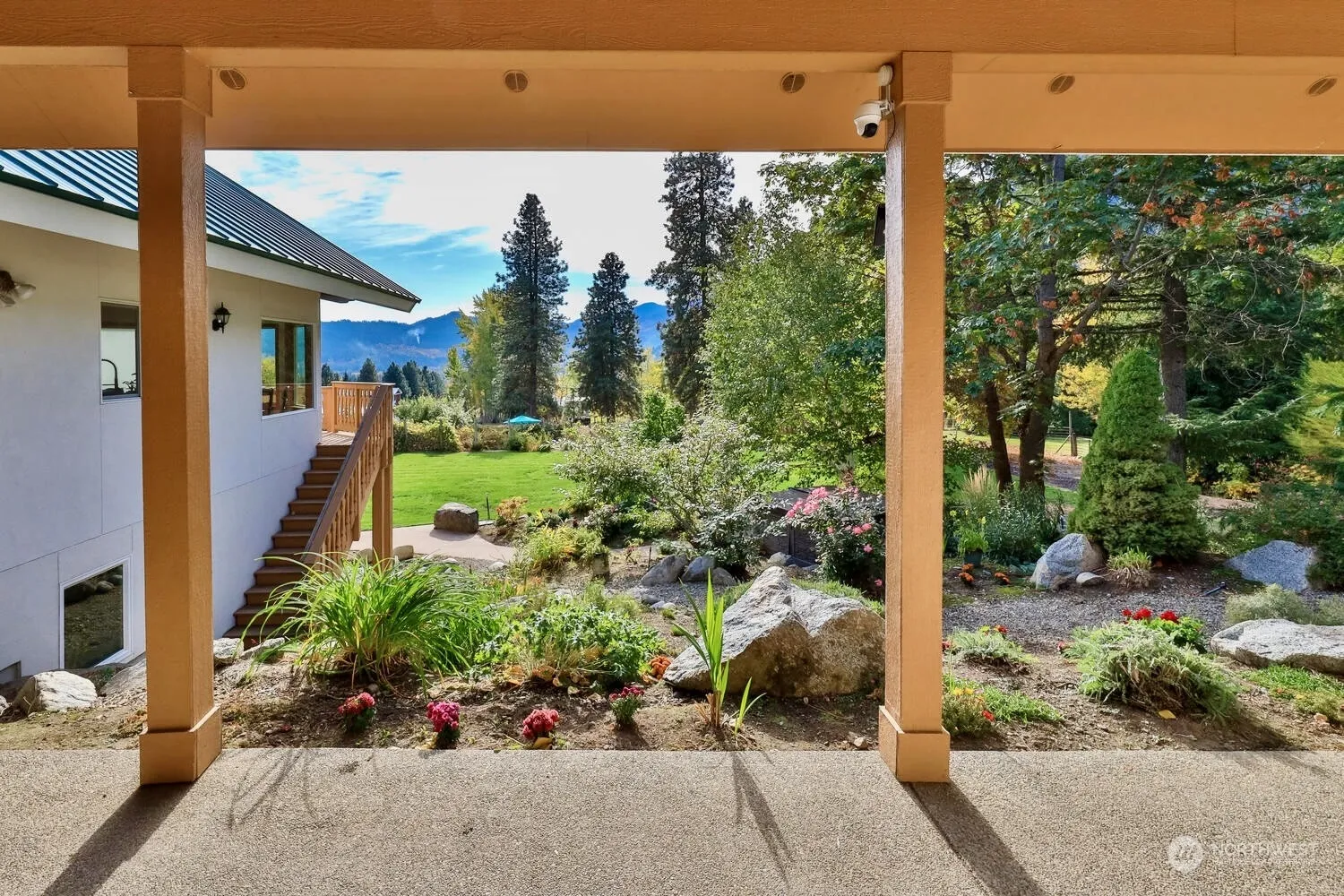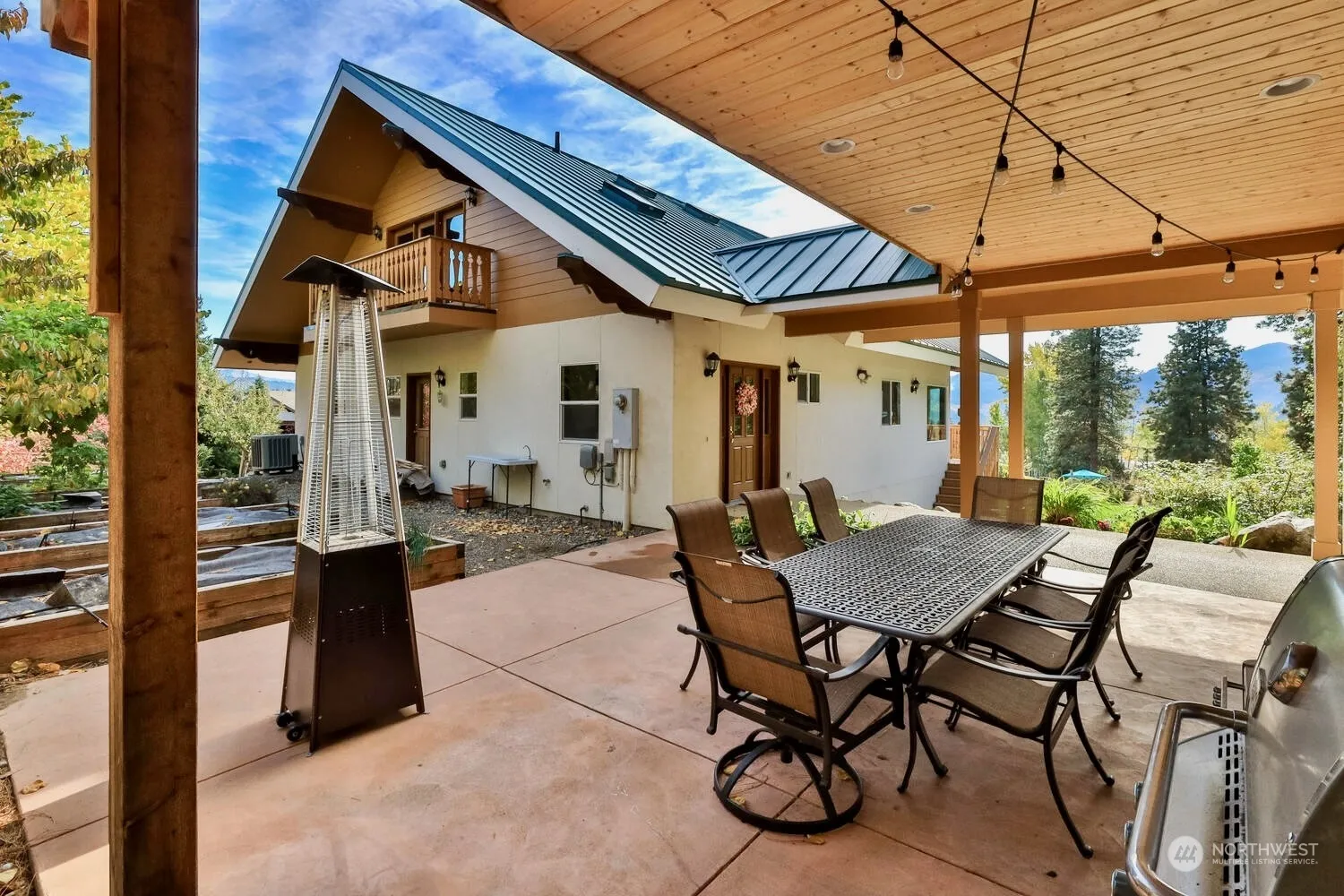 Private & secluded 4-bedroom, 2.5-bath home with 3,700′ of beautifully upgraded living space, set on a one-acre lot with mountain views. Easy living with primary suite on main floor in addition to a great room with propane fireplace, vaulted ceilings & access to the large deck. The open-concept living & dining areas are abundant in natural light & views. Upstairs, a loft space, ideal for a office or living area. 3 bedrooms on the lower level share a well-appointed full bath & the daylight basement provides access to the hot tub, yard, bocce ball court & gardens including a mature 100 plant Syrah Vineyard. Experience Leavenworth living with spacious accommodations, & outdoor amenities that make every day feel like a getaway.