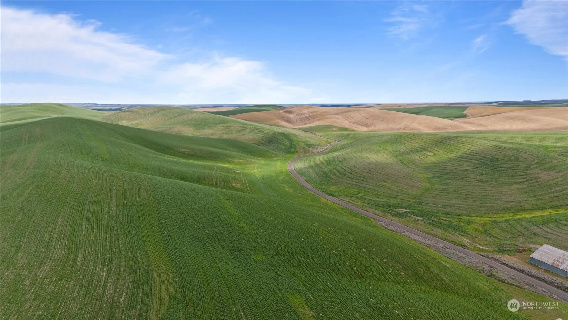 Privacy, peace and quiet can be yours at this 1108 acre dryland wheat farm. Included in the sale is custom 3 bed, 2 bath MF home with walk-out basement, shop, machine sheds, outbuildings. Located about 13 miles north of Prescott, off of Smith Springs Road. This farmland also has breathtaking views, abundant deer and birds – a hunter’s dream! The property is farmed on a winter wheat, summer fallow rotation, averaging 70 bushels per acre. Please see listing packet for additional details.