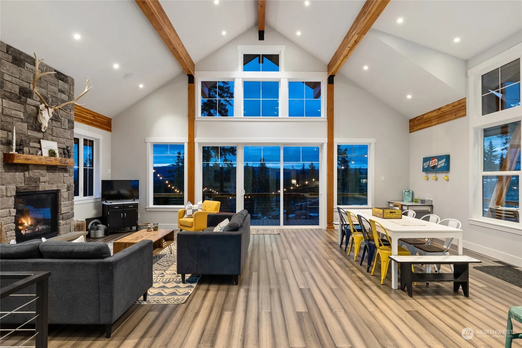 Welcome to this majestic retreat perfectly situated in the enchanting gated community of Tillman Creek. This grand 2+ story residence stands proudly on 3 lush acres, framing a picturesque panorama of the Stuart Mountains. Spanning an impressive 3,232sf (over 4,000sf including the game room conversion), this fully-furnished property boasts 2 identical primary suites on the main floor, 2 more bedrooms, a sleeping loft & 4 bathrooms, blending luxury with the comfort of a well-thought-out residence. The great room features a floor-to-ceiling window wall & fireplace that spills onto the entertainment deck. The garage has been thoughtfully finished & converted to a lively game room. Currently used as a short term rental. It’s a must see!