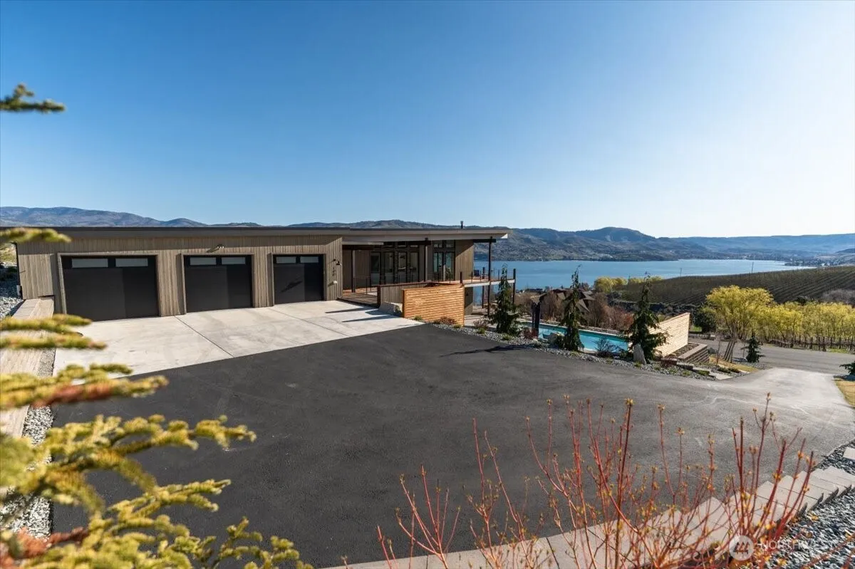 Discover modern elegance at 140 Clos Chevalle Road in Chelan. Nestled in this exclusive vineyard community perched above Lake Chelan’s South Shore, this 4-bed/3.5-bath Mountain Modern home features clean lines, expansive floor-to-ceiling glass walls, exposed structural steel beams, and warm natural materials that seamlessly blend with the home’s pristine surroundings.The heart of the home is the deluxe chef’s kitchen, with high-end Fisher & Paykel appliances, central to the open concept living space which extends to the expansive heated decks. Warm engineered hardwood floors lead to the private primary suite, complete with 5-piece bath featuring a full-height glass shower enclosure and sleek free-standing soaking tub. The lower level is warmed by heated concrete floors, zoned for each room. 3 bedrooms, including a guest suite with attached bath, complete the space. Mix a drink at the wet bar before heading out to your private oasis, complete with heated/cooled gunite pool and hot-tub, both with auto-covers. The perfect sanctuary for elegant gatherings or effortless relaxation. The recently re-sealed private drive leads to your massive 3-car garage, complete with EV charging station. Tasteful low maintenance landscaping frames the home in this picturesque setting. Clos Chevalle is a gated community, with scenic trails and a lush community park. Easy access via highway 97A and close to BMR golf course, lake access and a number of the regions top-rated wineries.