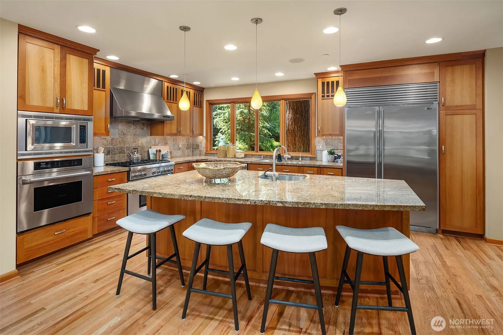 The private retreat of your dreams awaits in Island Point! This stunning estate is set amidst beautiful gardens and magnificent trees on a lovely level 1/3 acre lot, nestled down a peaceful lane near parks and schools. Step inside and discover quality craftsmanship at every turn–warm hardwoods, soaring ceilings & walls of windows framing the outdoors. Perfect floor plan features expansive living & dining spaces and two upper level bedroom wings: one, your luxurious primary suite with wonderful office or reading room; the other, 3 bedrooms & full bath tucked together + huge family room (or 2nd primary suite). Wraparound outdoor entertaining patio, fully fenced backyard, 3-car garage w/ EV charging & gym. Stroll to south-end shops & dining!