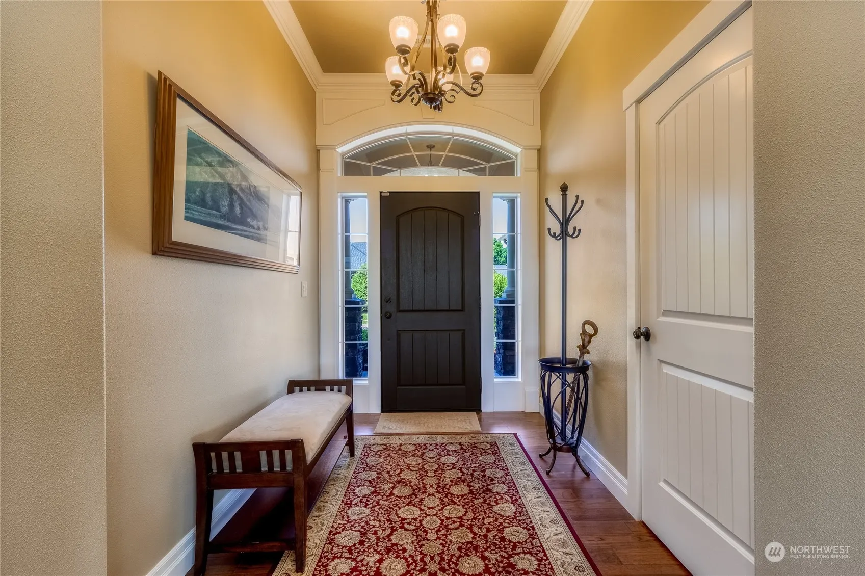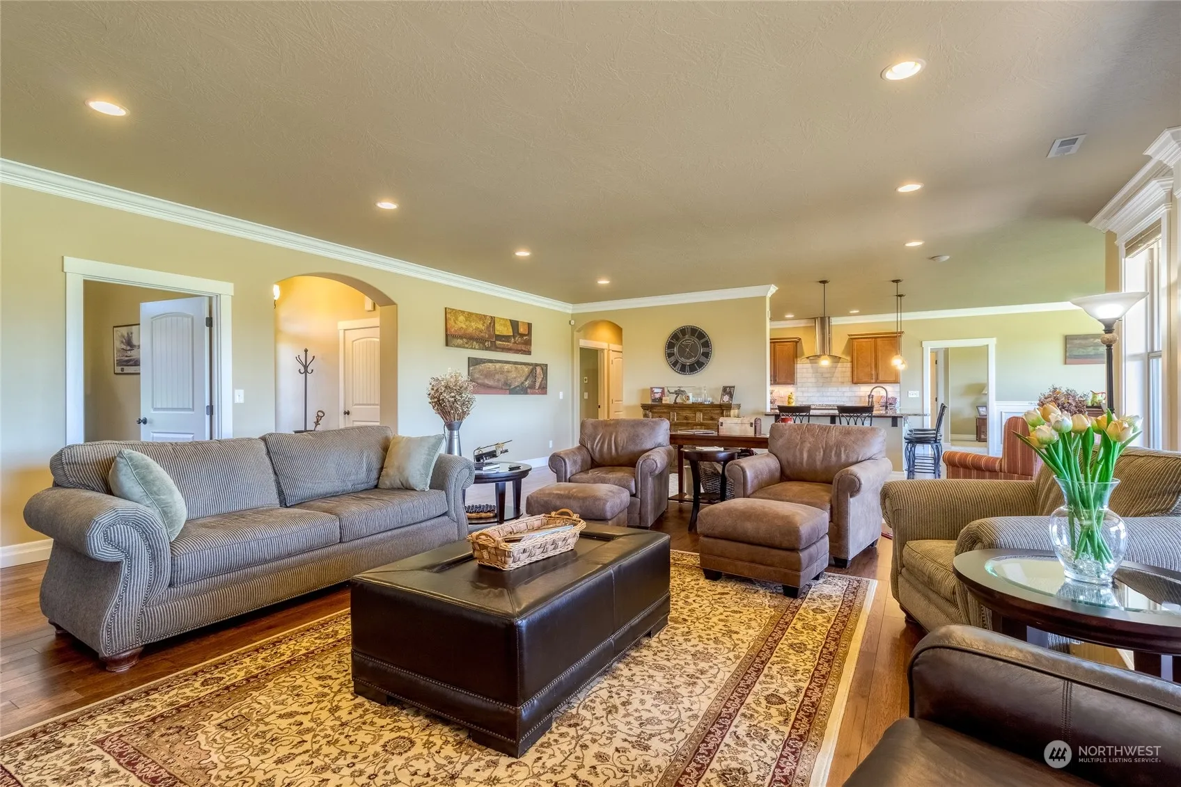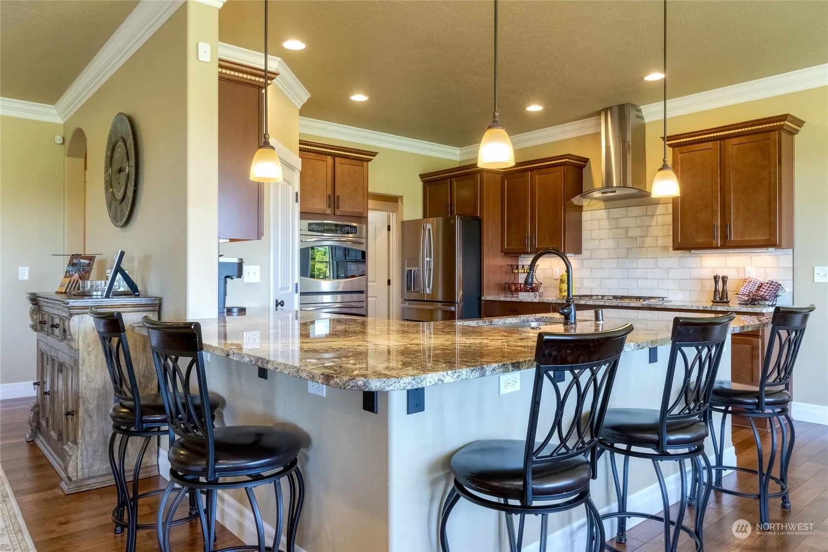 As soon as you open the door, you will be greeted with a choice of whether to give your attention to the the sheer openess & natural light of these large rooms, or the amazing panoramic view of the Blue Mountains through the generous windows. After taking in the sheer size & comfort of the Great Room, turn either direction to enter one of the Primary Suites, the larger one with 2 walk-in closets. The chef size kitchen with plenty of Granite counterspace and Maple cabinets invites you to prepare those tasty dishes in the double convection oven. Milgard Windows are energy efficient in all weather conditions. Nearly a quarter acre lot whose back yard offers a large covered patio for gazing at the mountains over morning coffee or evening wine.