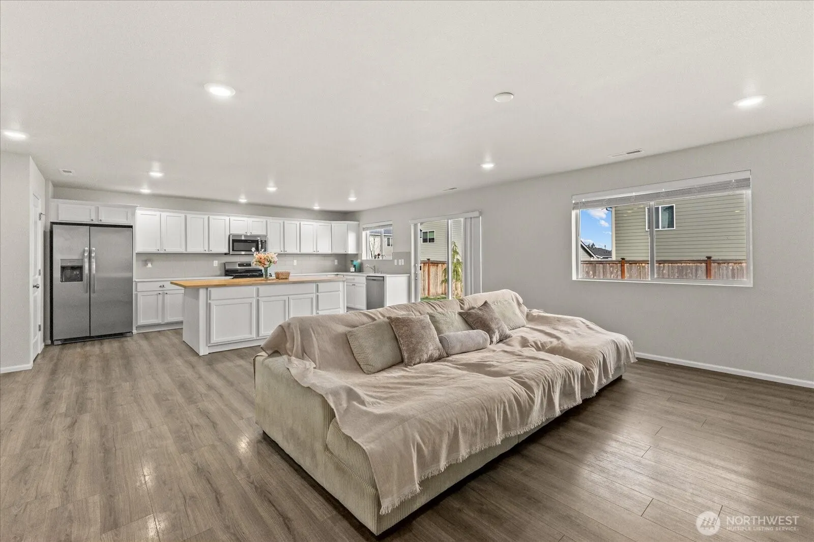 Welcome to this beautifully built 2023 home in the desirable Daybreak community! Featuring durable hardwood flooring throughout the main level, this home offers a spacious layout with a large living room and an impressive kitchen designed for entertaining. Enjoy the massive island, abundant cabinetry, quartz countertops, and stainless steel appliances. Upstairs features 4 bedrooms and 2.5 bathrooms, including a generous primary suite with a huge walk-in closet. Fully fenced backyard, 3-car garage, EV charger, and A/C complete this move-in-ready home. A must-see!