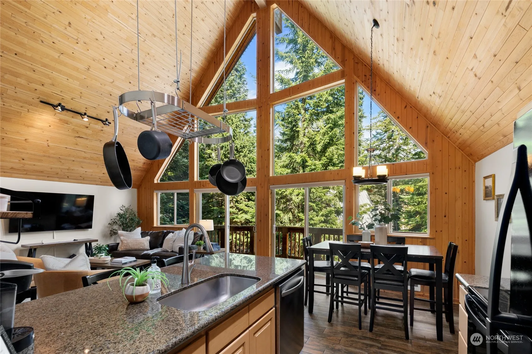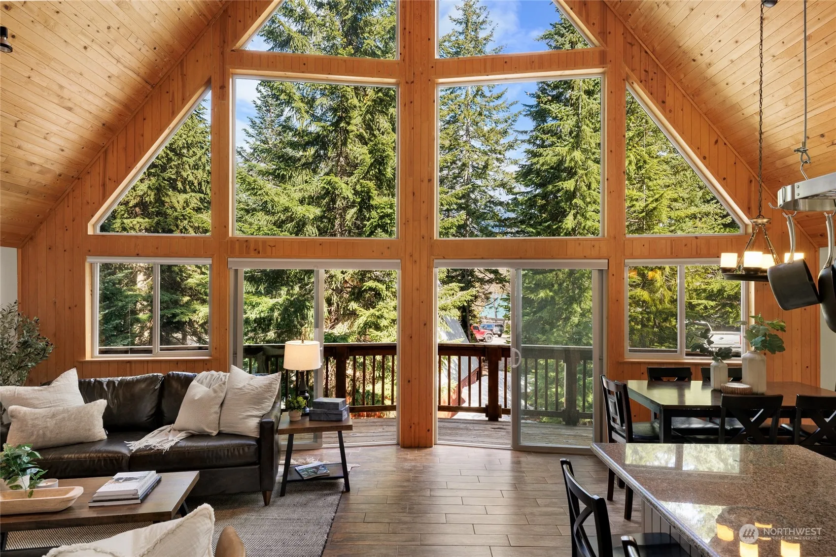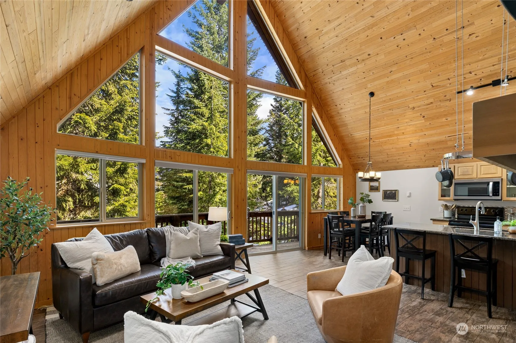 Welcome to your year-round mountain retreat! This custom A-frame cabin makes a great vacation rental tucked into the slopes of Snoqualmie Pass & is sold fully furnished ready for adventure. Enjoy floor to ceiling windows, soaring timber ceilings & wood-burning fireplace. Open living with spacious kitchen & bar seating, two spacious guest rooms with a shared bathroom on the main floor and primary suite on the second floor with soaking tub and built-in cabinetry for storage. Explore the spacious lower level with rec room, game room and 3/4 bath. Garage is great for bikes, ATV’s & seasonal gear. Just steps to The Summit @ Snoqualmie Central ski resort and easy access to I-90 for quick trips to Seattle and Bellevue. Hear the mountains calling?