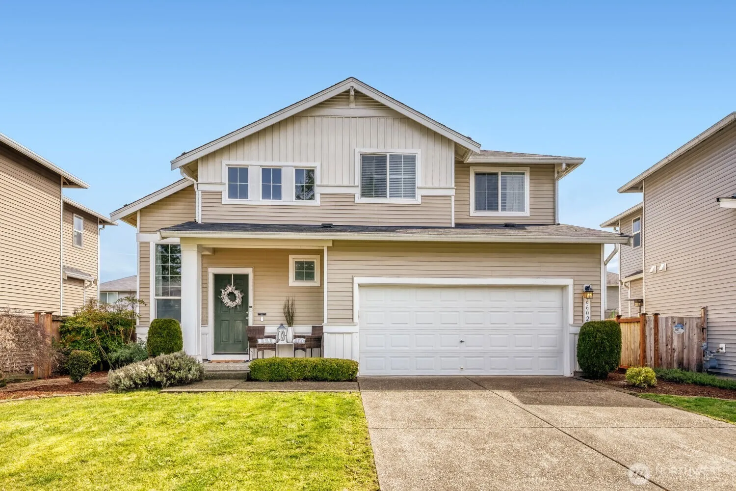 Meticulously maintained home in North Tapps Estates, ideally located in the highly sought-after Dieringer School District. This light-filled home features vaulted ceilings, gleaming floors, air conditioning, and a warm, inviting living room with a gas fireplace that is perfect for cozy evenings or entertaining guests. Pride of ownership is evident throughout. Upstairs you will find a spacious primary suite with ensuite bath, along with two additional bedrooms and a full bath. The level fully fenced yard is designed for enjoyment, with a large deck and charming cabana ideal for outdoor gatherings. Perfectly positioned between scenic Lake Tapps and Lakeland Hills, this home offers exceptional access to parks, shopping, dining, trails, playgrounds, and endless recreation. Enjoy being just moments from Lakeland Hills Town Center, waterfront park access, wildlife, and major commuting routes, with skiing, hiking, and camping all within an hour.