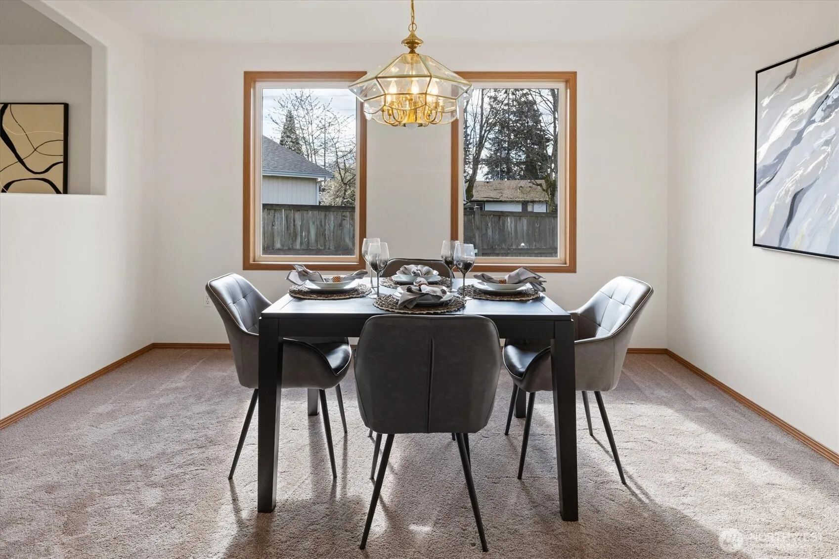 Welcome to this beautifully refreshed rambler tucked away at the end of a quiet cul-de-sac in Auburn! This rare single-story, 3-bedroom, 1.75-bath home offers 1,570 sq ft of comfortable living on a level 7,336 sq ft lot — with NO HOA. Step inside to find brand new carpet and fresh interior paint throughout, making this home truly move-in ready. The functional floor plan features a formal living room off the entry that flows into the formal dining room with elegant tray ceiling detailing. The kitchen includes stainless steel appliances, warm wood cabinetry, a generous pantry, and an additional eating area. The primary suite offers a walk-in closet and private en-suite bath with walk-in shower. Two additional bedrooms and a full bath provide flexibility for guests, office space, or hobbies. The utility room with extra cabinetry leads to the oversized two-car garage with plenty of storage. Enjoy the fully fenced backyard with a large patio and storage shed — perfect for entertaining, pets, or gardening. Stay comfortable year-round with central A/C. Single-story homes on level lots in quiet cul-de-sacs are hard to find — don’t miss this one!