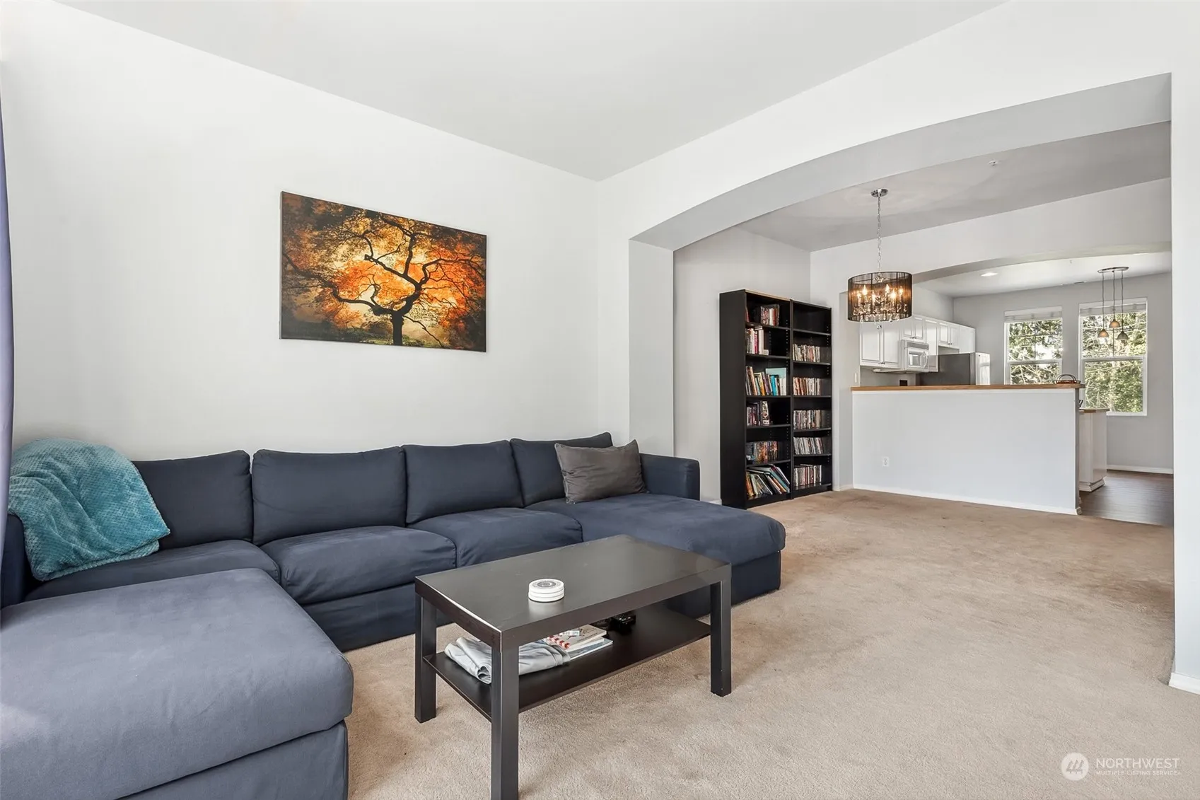 Desireable townhome in Bayview at The Lakes! This 1148 sq. ft. townhome features 2 bedrooms and 2.5 baths. Plus just off of the garage is a finished room, which could be 3rd bedroom or office. Open concept living. Enjoy the gas fireplace in the living room which opens up to the dining area and kitchen. The kitchen has an island for prep and New flooring. All kitchen appliances and New Washer & Dryer included. Good size primary suite with 3 piece bath. Entertain on the large deck off of the living room. Relax on the additional ground level patio. New Carpet to be installed prior to closing. Buyer to select color! 1 car garage. The Community offers several trails to enjoy. Close to Sounder train station & all amenities. Welcome Home!