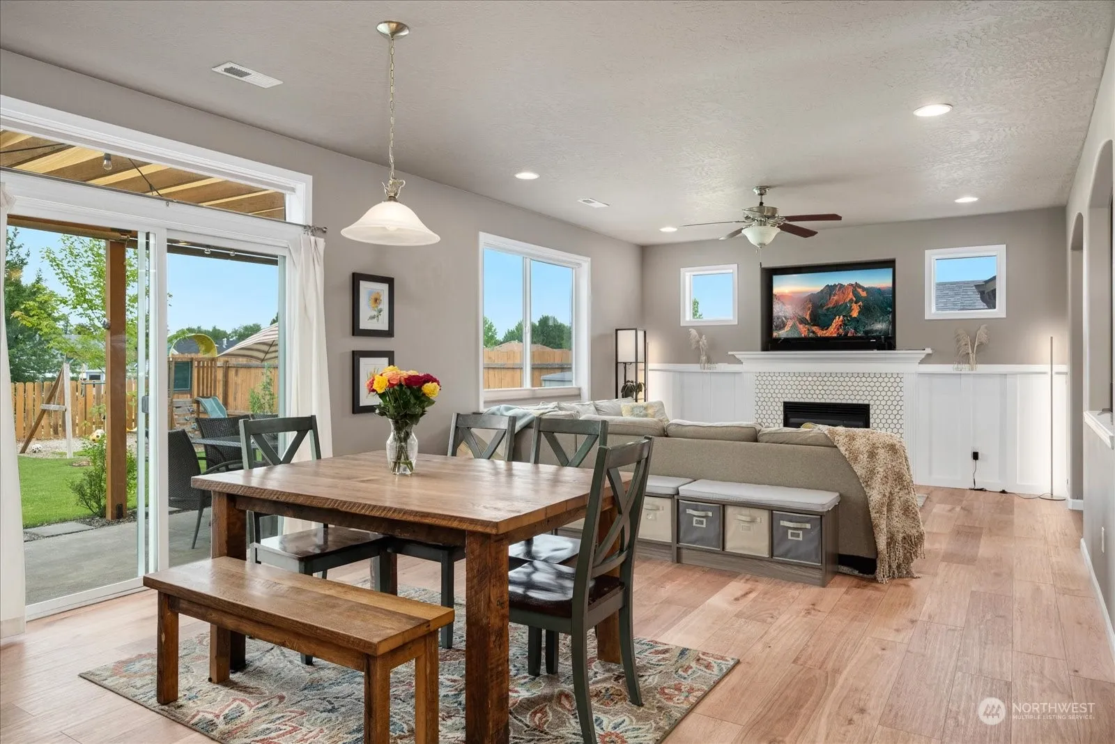 Home honed for living, working and playing. Prepare meals in open concept living or step outside to the easily enclosed grilling station. Versatile main floor den – great home office, playroom or guest room. Spacious primary suite provides a peaceful environment for rest and recuperation with soaking tub and views of The Blues. Laundry on 2nd floor (with bedrooms) with space for home projects too. Fully enclosed yard with mature gardens and play scapes is adjacent to seasonally used railroad for year round privacy. 400 sq ft garage where you CAN park your vehicles AND use a work bench plus storage. Many customized finishes (wood floors & stair treads, tile) level up this well-maintained home.