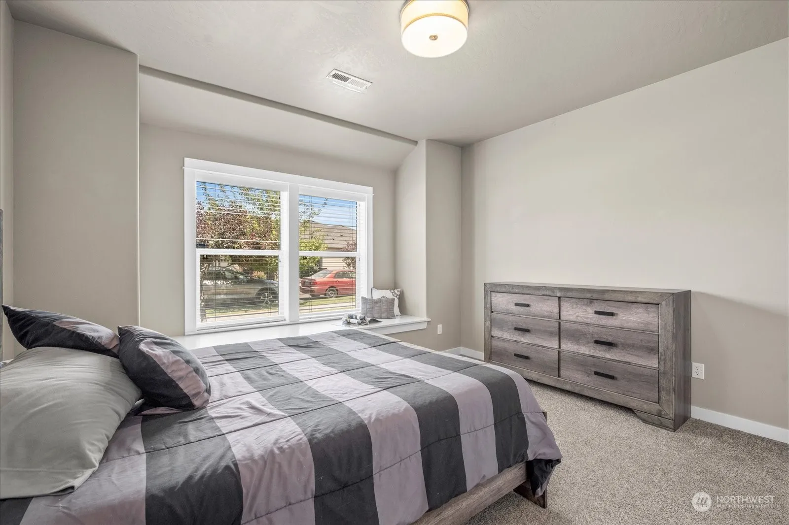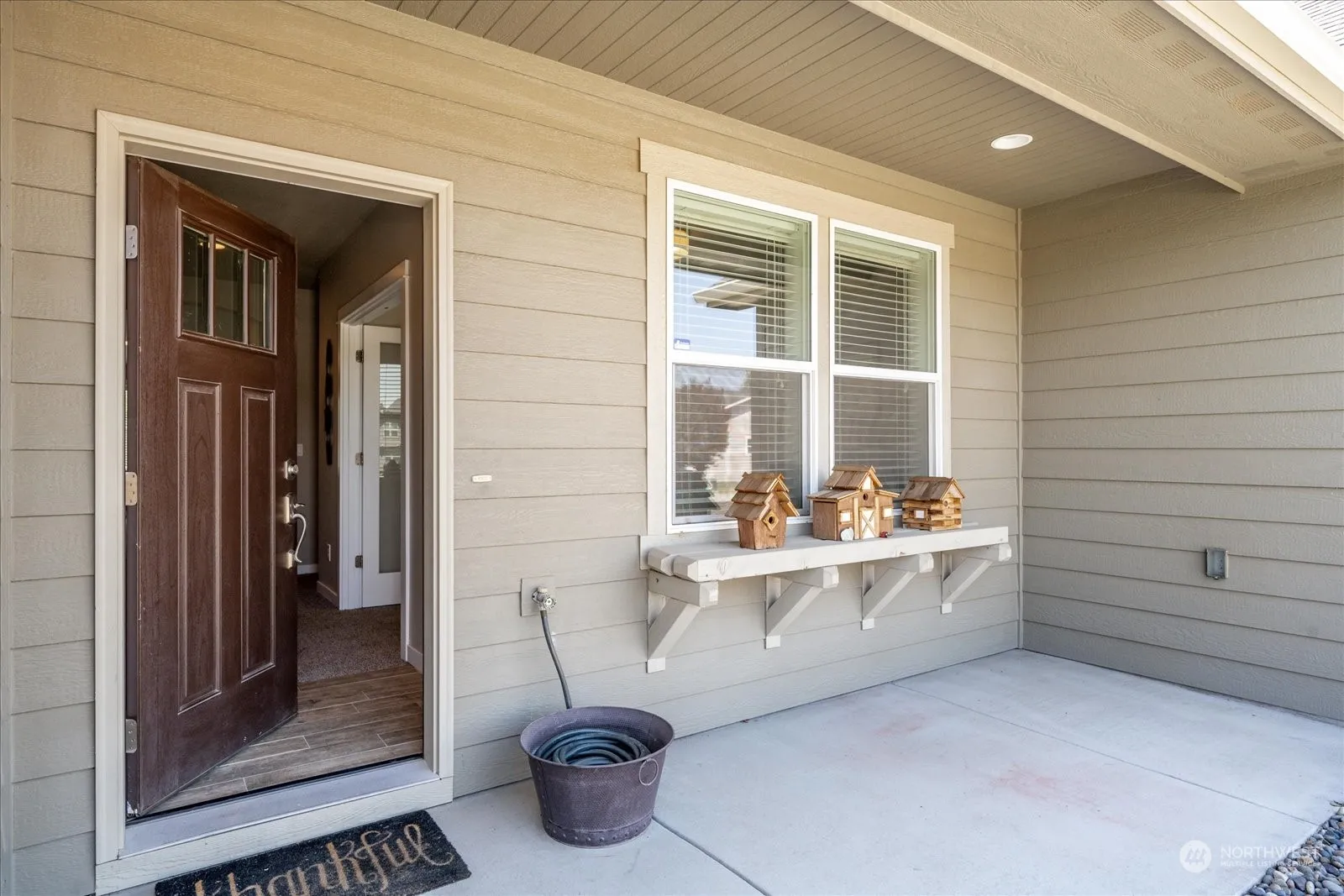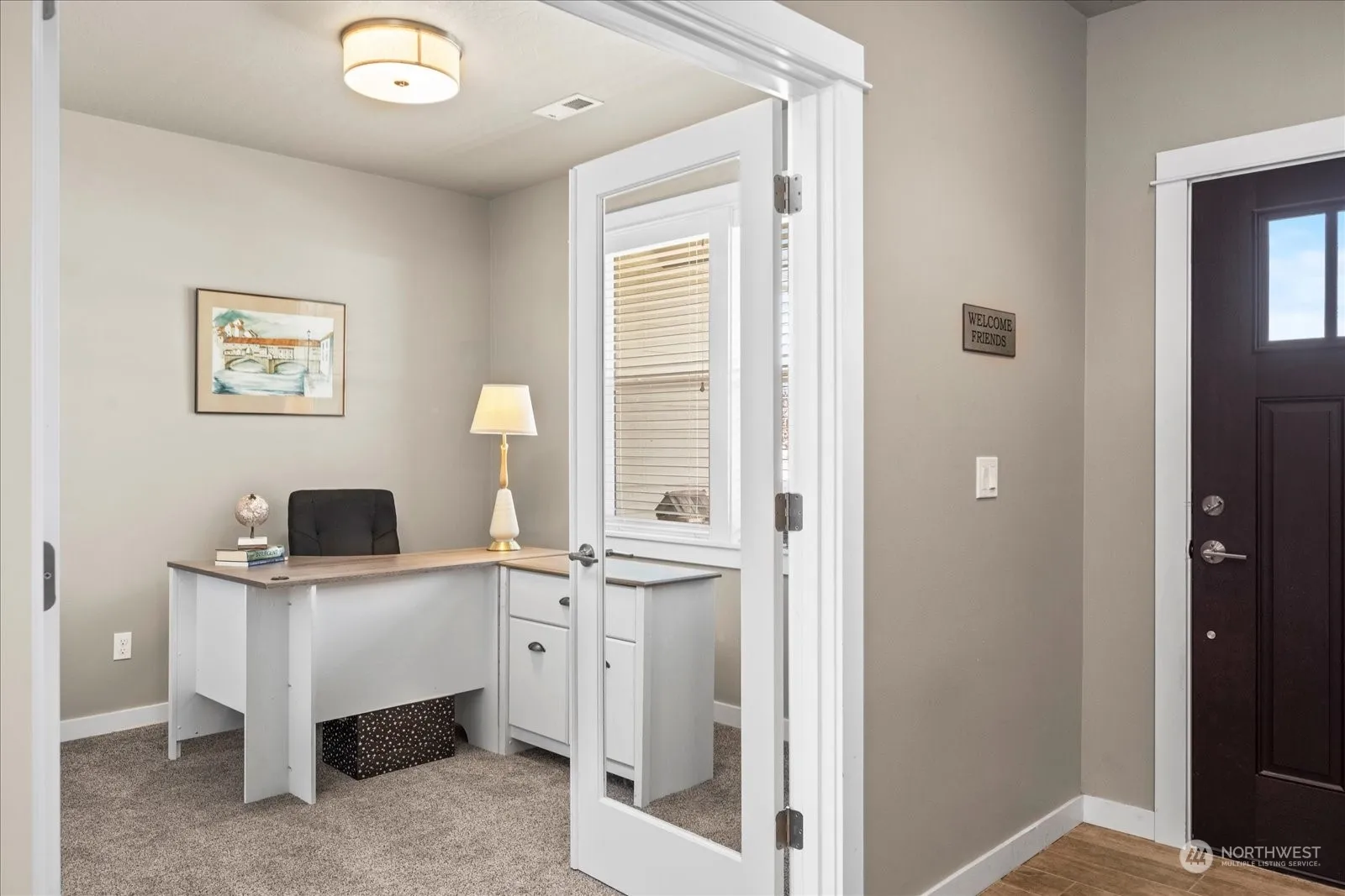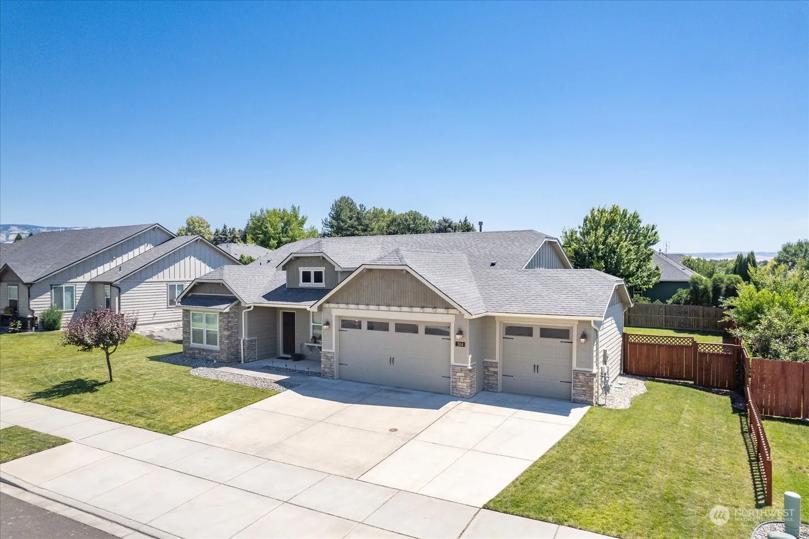 Single-Story Living – This open floor plan home has all the upgrades you want – tile flooring, solid surface countertops, gas fireplace, vaulted ceiling, and 3-car garage (to name a few). Kitchen is beyond basic with stainless steel appliances, pantry, island and bar seating. Bedrooms (1 has glass french doors – currently an office) with large closets, picture windows with room for furniture & movement . Private primary suite separate from other bedrooms with dual vanity, lowered counter area, separate soaking tub, and large walk-in closet. Access the fully-fenced back yard and covered patio from the main living area with access from garage too – UGS & grass w/room for garden. Accessibility features include level entry & open spaces.