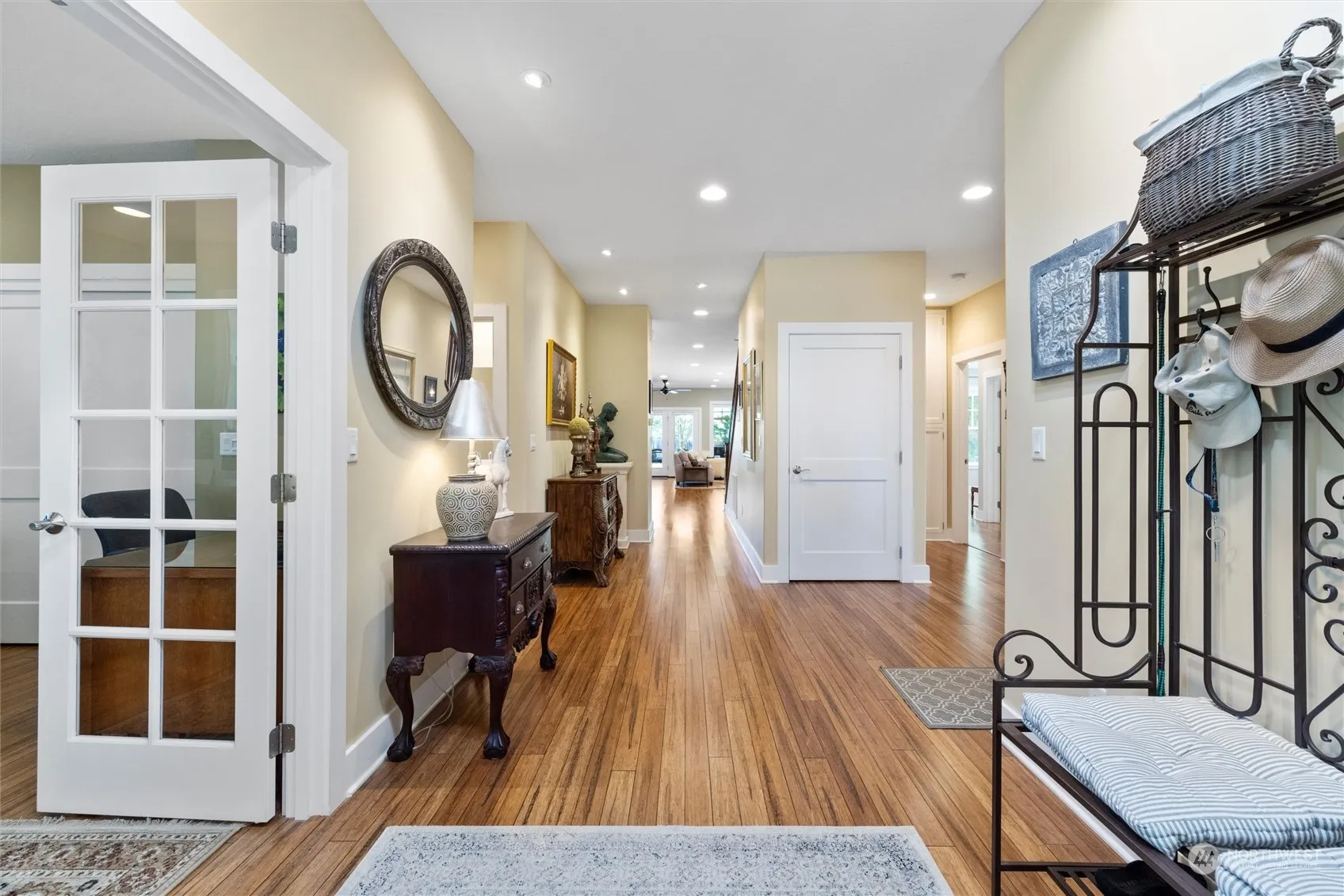 Experience luxury living in this meticulously crafted custom home. No detail was overlooked in its thoughtful design, featuring gracious wide hallways, main floor primary suite, great room w/ gas fireplace, gourmet kitchen w/ enormous center island, multi-purpose laundry/hobby room & a step-less entry that flows from front door to back patio, shop, & backyard. This spacious home offers room for everyone, w/ the real magic beginning as you step out the back door. Timber frame covered patio, expansive lawn, lush gardens w/ custom potting bench, hobby/play house, & fully insulated shop, pre-wired for solar, could easily be a wonderful MIL or income suite. A short stroll to Whitman Campus & downtown. The perfect blend of comfort & convenience.