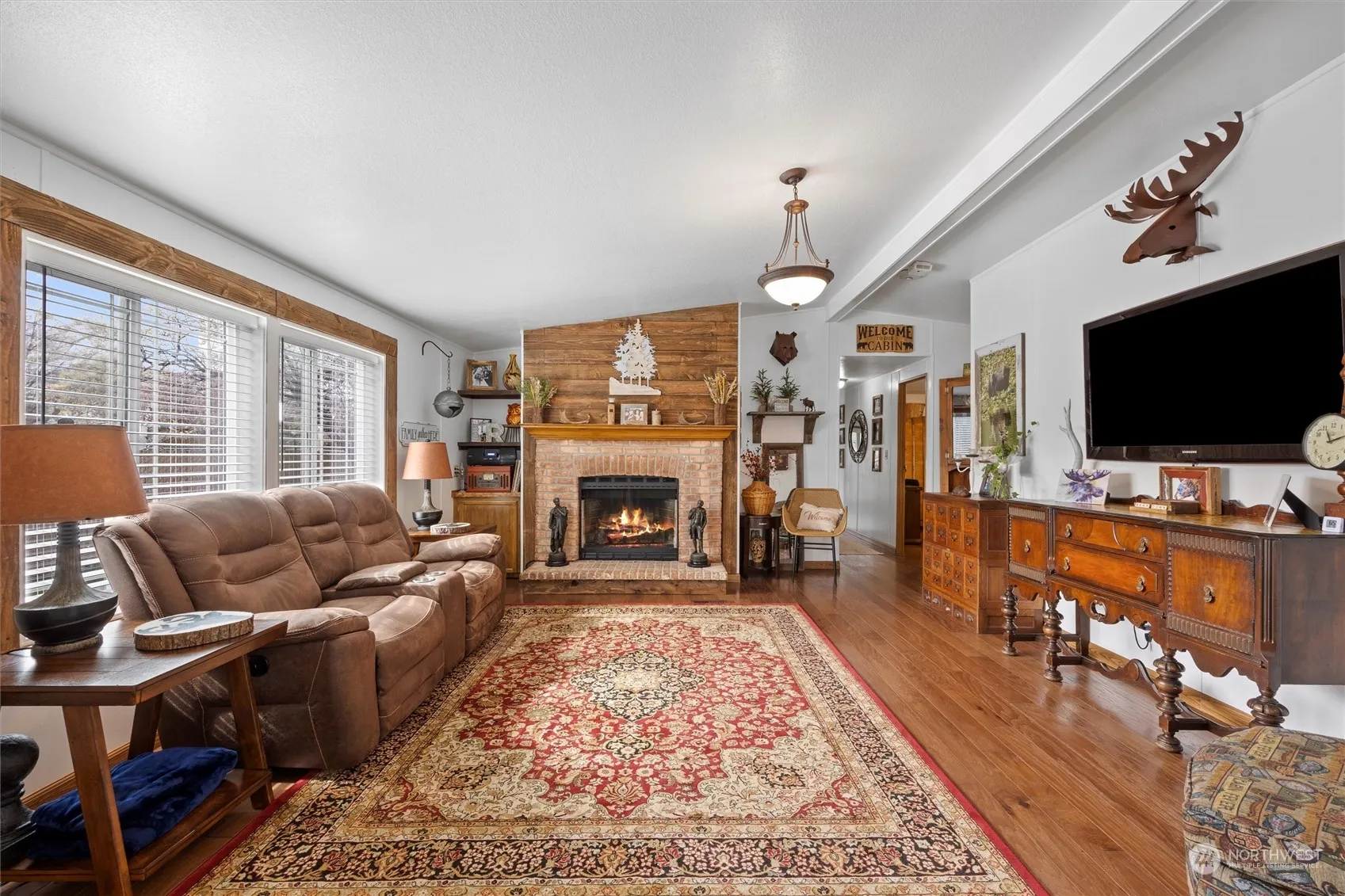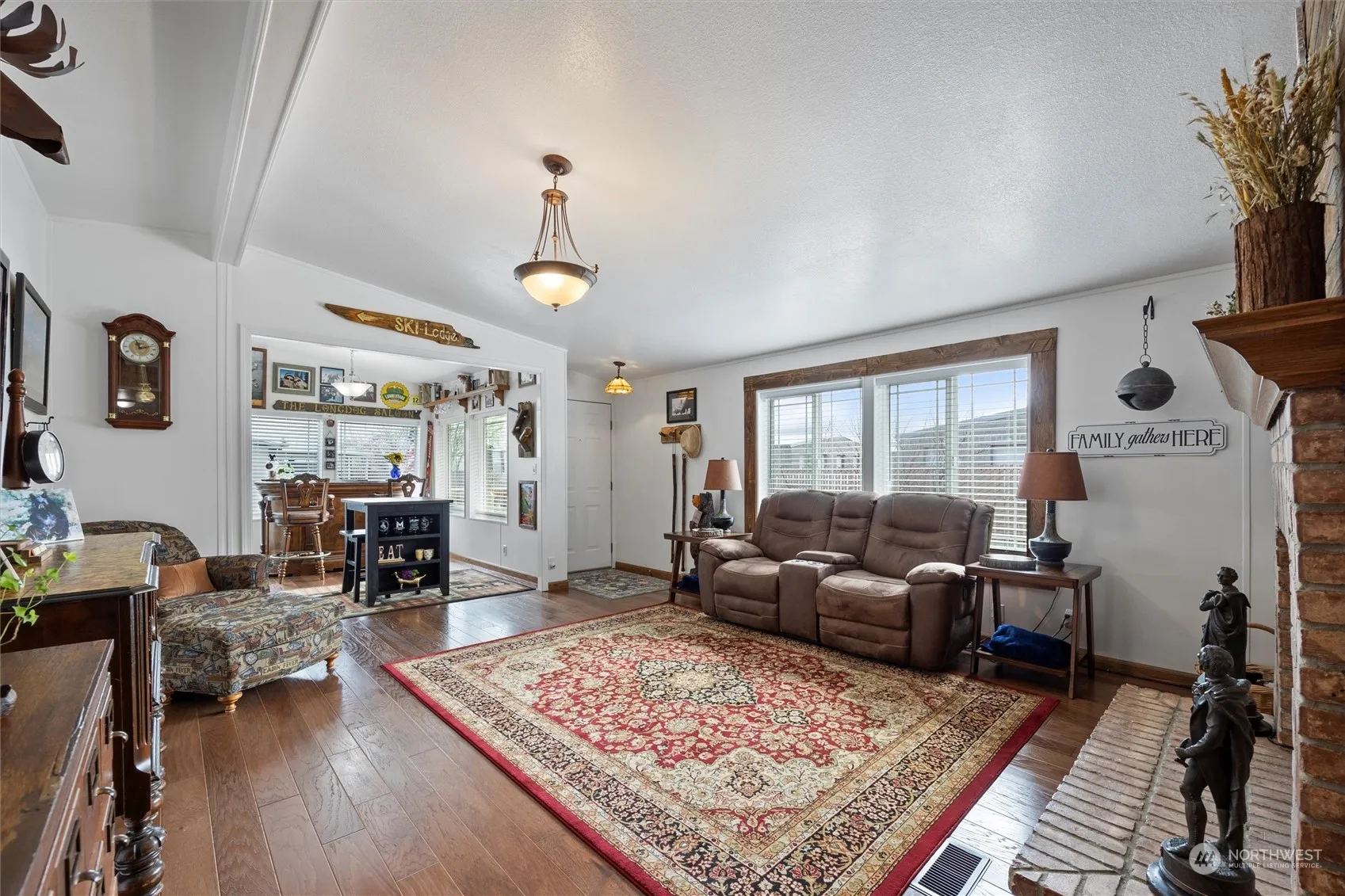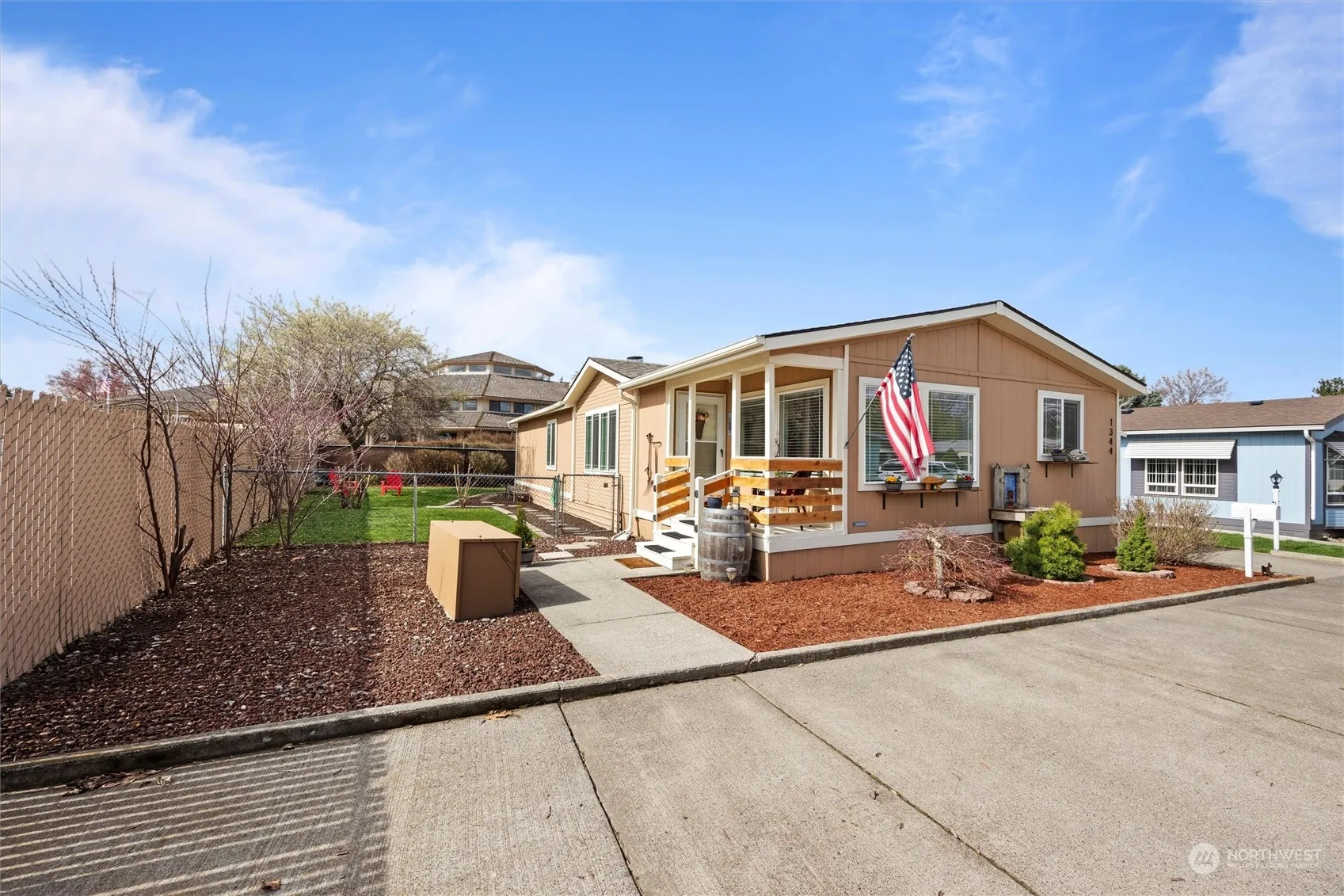 Beautifully updated 3 bedroom, 2 bath manufactured home in Rancho Villa retirement community. Situated on a nice, quiet lot on dead end street. Living room is spacious w/vaulted ceilings & beautiful fireplace. Hard surface floors throughout. Updated kitchen w/new counters, cabinets, island & flooring. Dining room off kitchen. Large primary bedroom w/walk in closet & slider out to patio & private backyard. Updated primary bath w/new soaker tub & shower. 2 additional bedrooms & guest bath with large shower. Many upgrades include: New roof in 2024, freshly painted interior, newer heat pump, furnace, vinyl windows, 10×10 Tuff shed & more. Oversized carport w/generous sized parking pad. Yard is well maintained and fenced. Welcome home!