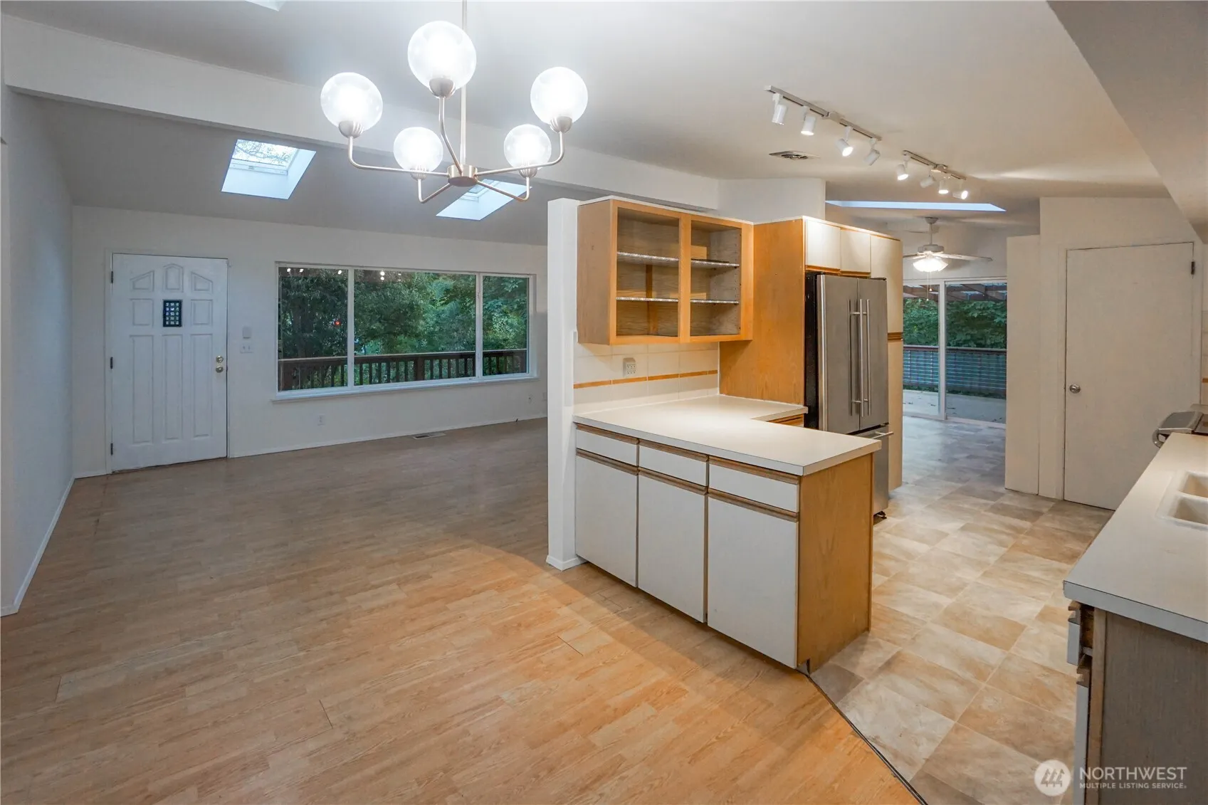Lovely mid-century home on a quarter acre lot nestled in natures wonderland as it connects to a gorgeous greenbelt for the ultimate in-city privacy & seclusion. Recently updated with six new skylights, roof with leaf filters, new paved driveway, RV parking with 30 amp hook-up. Spacious flex room on lower level could be media, rec-room, shop or possibly 4th bedroom. Generous wraparound deck with oak bar and bar stools. Backyard includes gazebo & abundance of fruit trees; apple, pear, blueberry, raspberry, plum, cherry, huckleberry & more! Newer LG washer/dryer & all appliances included. Close to hiking at Salmon Creek Ravine Park or take about a 30 minute scenic hike to the beautiful beach at Seahurst Park or 8 minute drive to Seola Park!