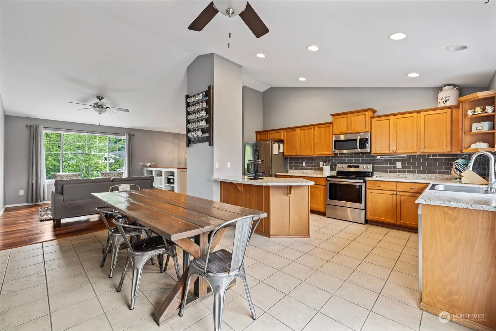Buyer financing fell through, Back on market! COnvienantly located in the Yelm Terra neighborhood, This captivating 5bd 2.75ba residence offers refined living at its finest. Step into the inviting open-concept main floor flooded with natural light. The stunning kitchen features a grand sit-in island & drink nook. 5 piece master bath recently remodled with marble finishes. Relax in the cozy lower family room by the gas fireplace or gather around the firepit in the backyard for memorable evenings. With new A/C, roof/gutter cleaning and furnace, plus a garden shed and laundry room plummed for a sink, convenience is assured. Located near downtown Yelm and JBLM, with schools within walking distance, this home epitomizes comfort and style.