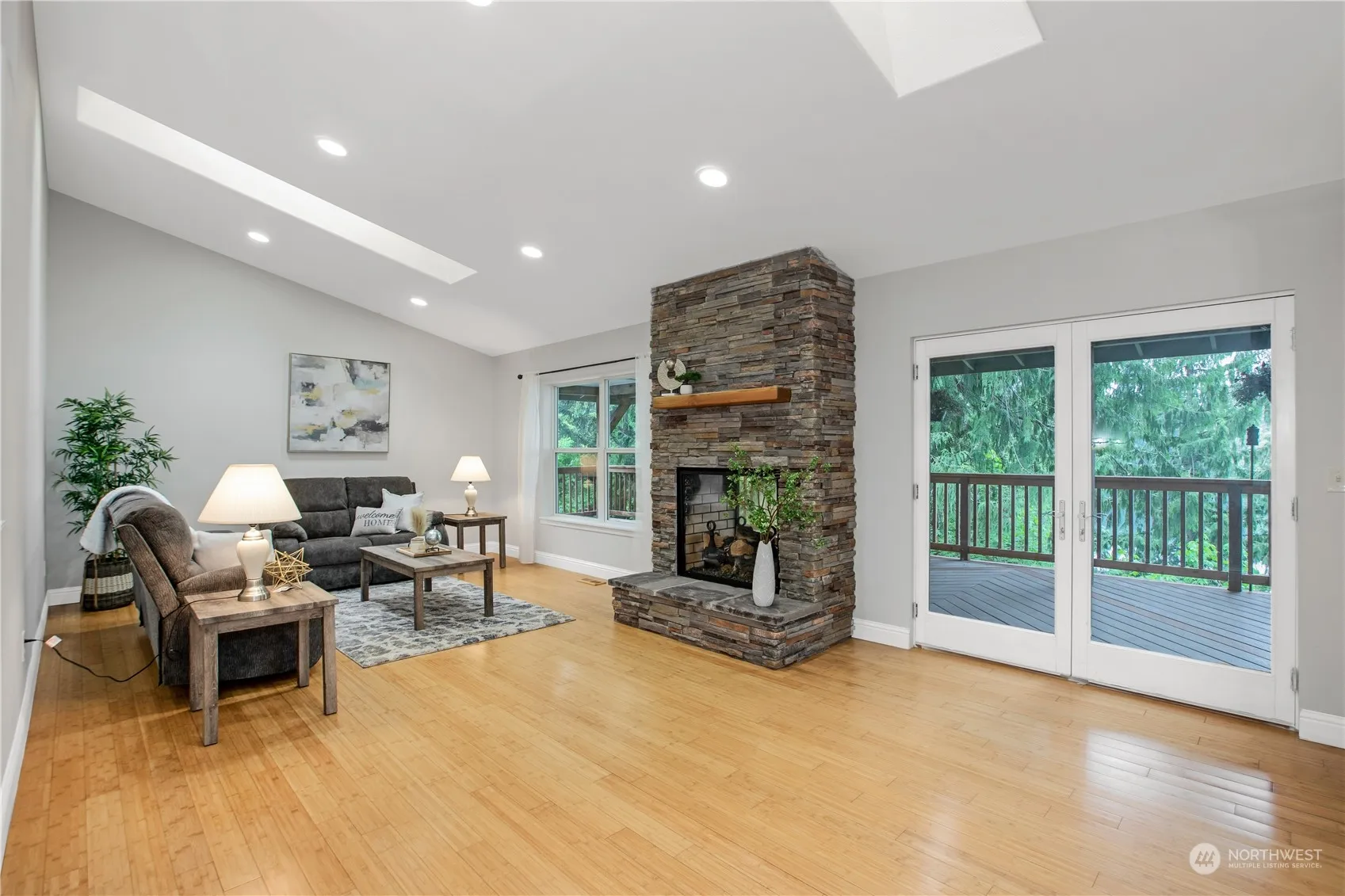Dock your boat at this luxurious custom home with 75 feet of Clear Lake waterfront. Featuring a gourmet kitchen with a three-sink stainless setup, granite island, and bamboo flooring. This home also boasts an open living area with a two-way stone fireplace. The main floor master suite includes a five-piece granite and ceramic-tiled bathroom, and the main area also has a dedicated office space. The finished basement, with newly installed carpet, offers 1 bedroom, bonus room, full bath, laundry, and a large recreation room with walkout access. Fresh interior paint throughout enhances the home’s modern feel. Enjoy outdoor living on two expansive decks. Don’t miss out on this opportunity!