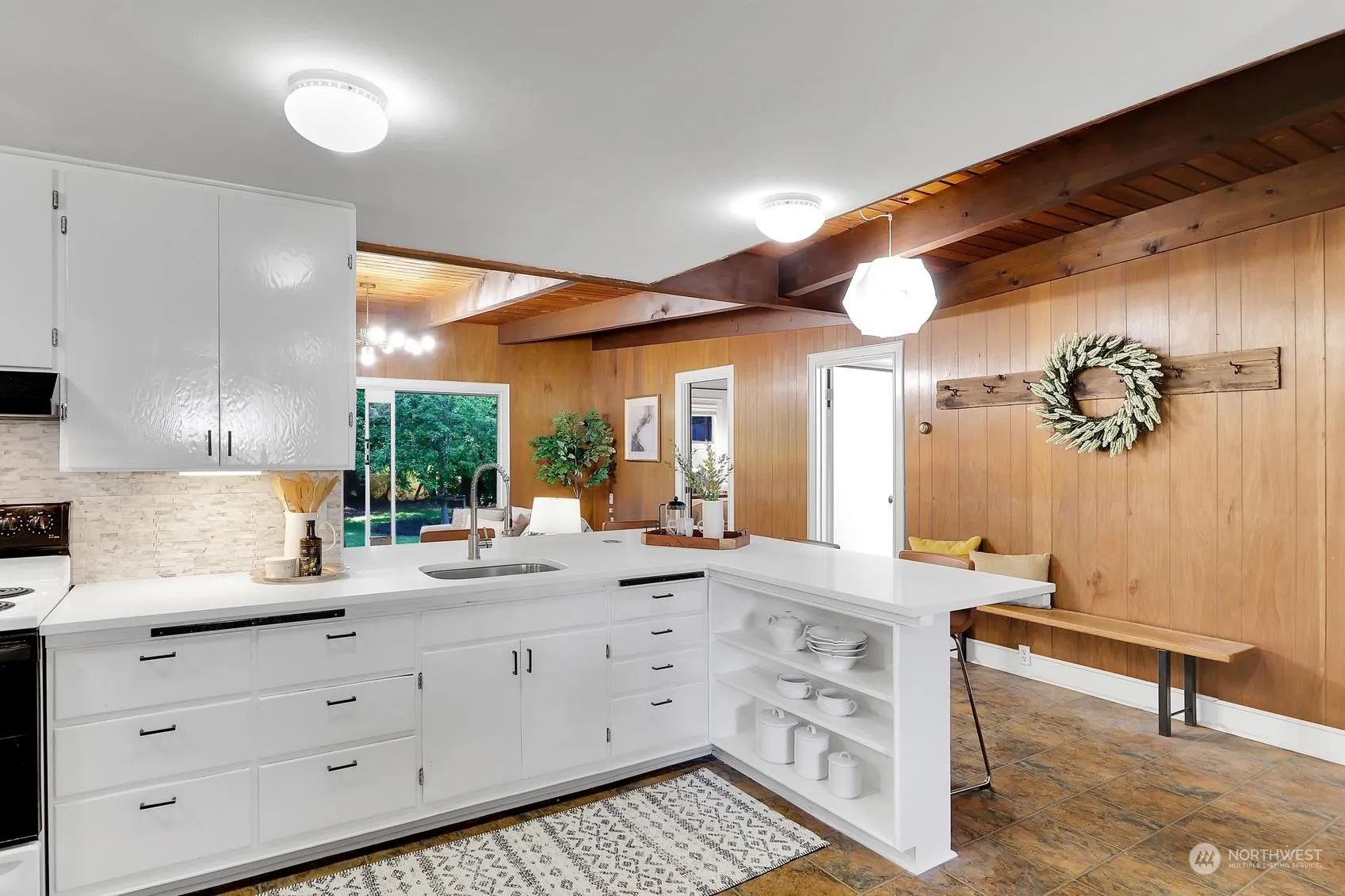 Step out of the ordinary with this gorgeous 1 LEVEL Midcentury Modern beauty. Vaulted and beamed ceilings and wood paneling add to the allure of this 5 bed 1.5 bath home. Kitchen has been refreshed to allow excellent flow and entertaining options. Wood burning fireplace adds to the charm of the home. Huge sliding glass doors allow the outdoors to move inside. Sizeable laundry with generous open pantry and work space. Fully fenced large back yard is a gardener & bird enthusiast’s delight. Workshop, featured as a butler’s pantry & appliance garage gives several choices. Tons of storage in carport area and in other areas within home. Many parking options. Close to restaurants, shopping, 1/5 and future lightrail.