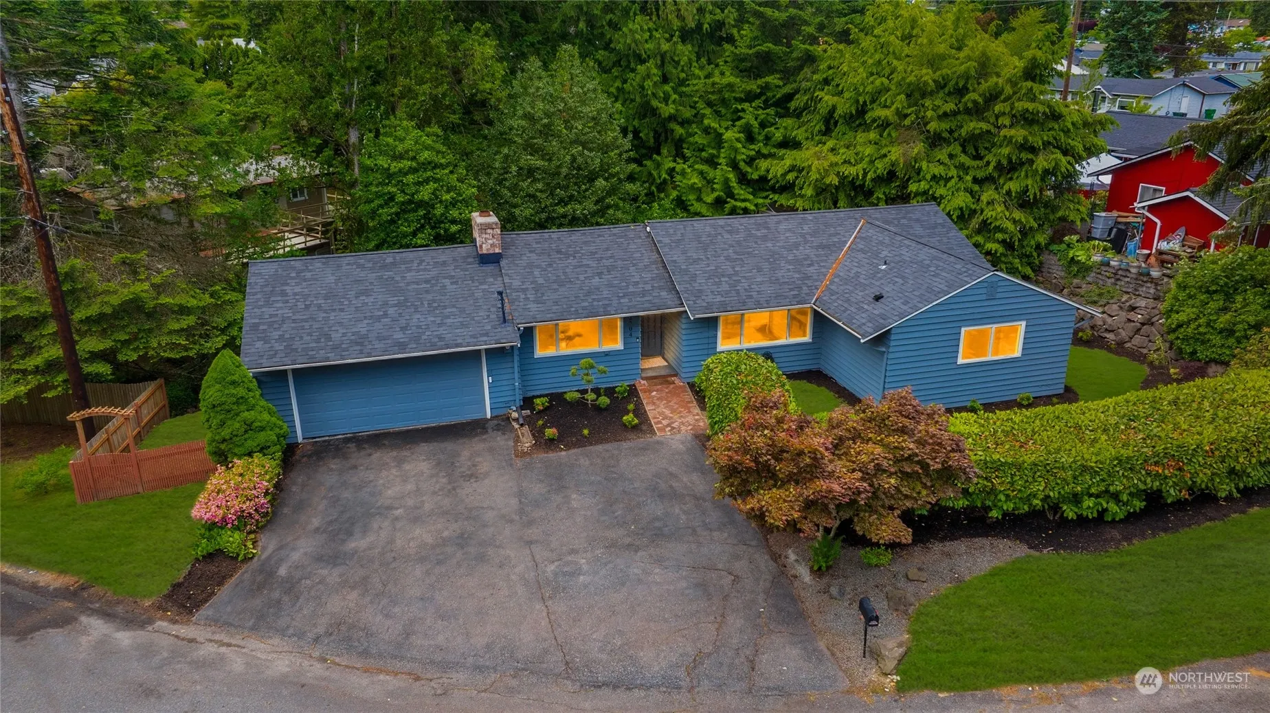 Fully renovated rambler in a quiet neighborhood with a private wooded backyard on a corner lot, close to all amenities. The remodel includes a new roof, windows, kitchen, appliances, bathrooms, electrical, plumbing, flooring, garage door, and fresh paint inside and out. Additionally, the home offers three bedrooms, a large living room, and a versatile bonus room, perfect for gatherings. Pre-inspection completed by the contractor, ensuring a worry-free move-in. The two-car garage provides ample space for storage and hobbies, plus plenty of room outside for a boat or RV. Enjoy outdoor entertaining on the sprawling deck, with plenty of space in the yard for play. Ideal for downsizing.
